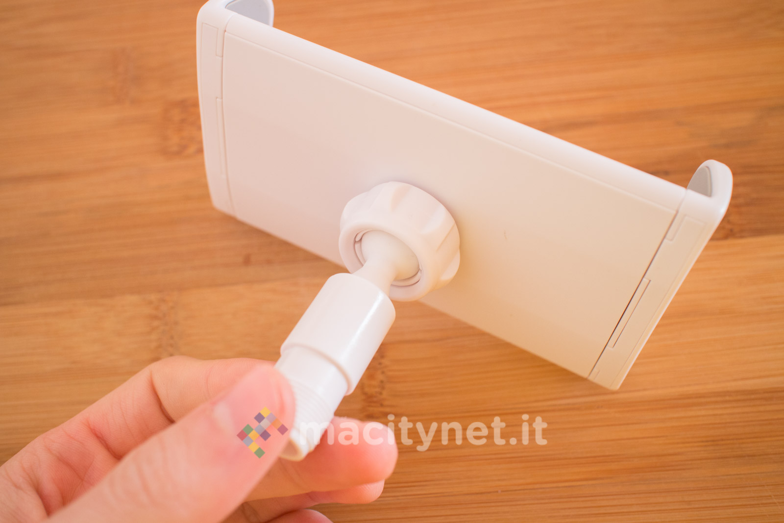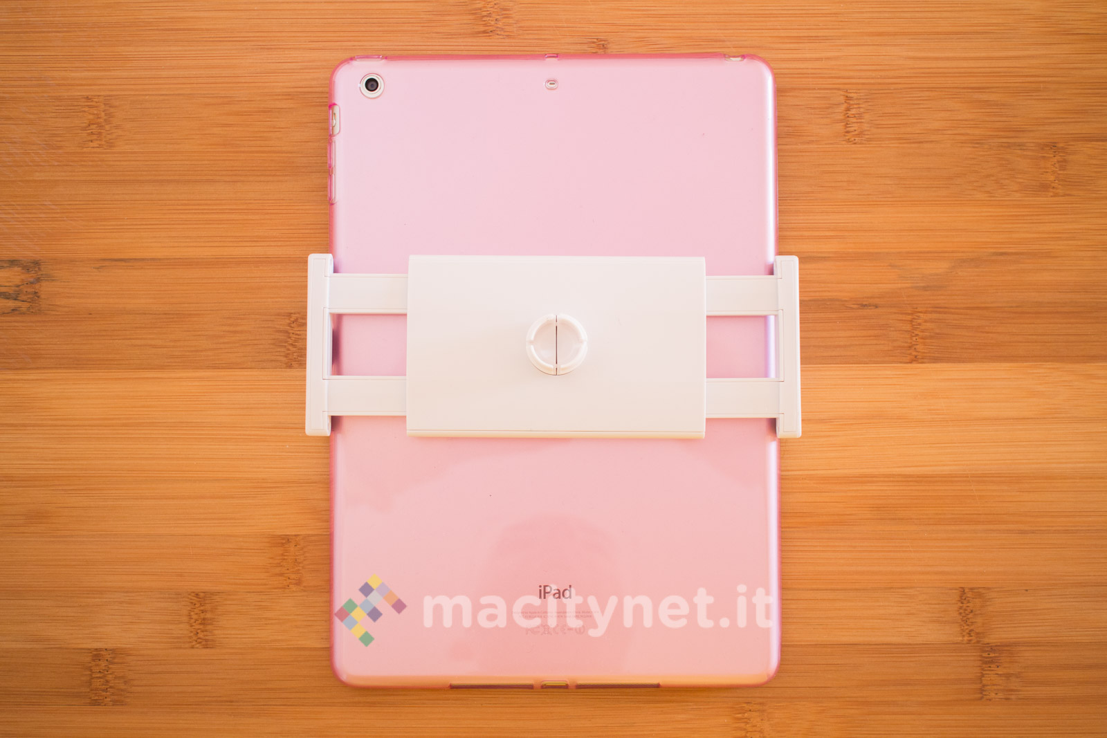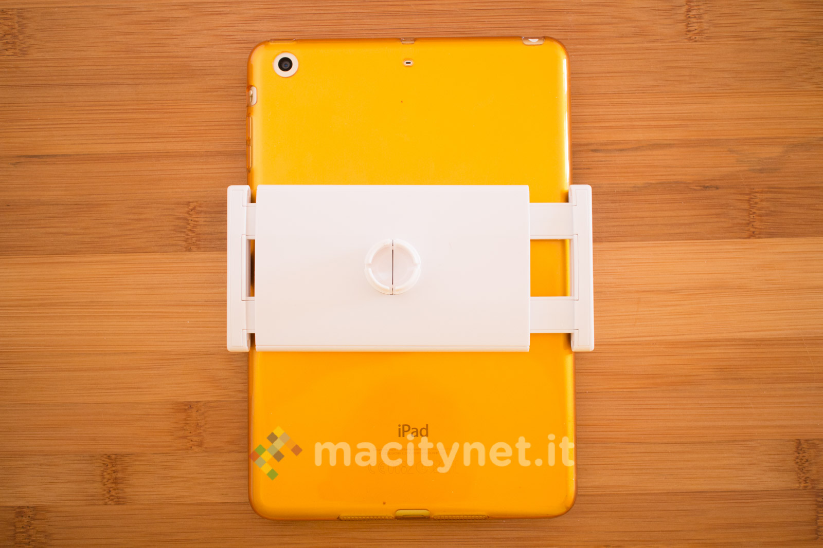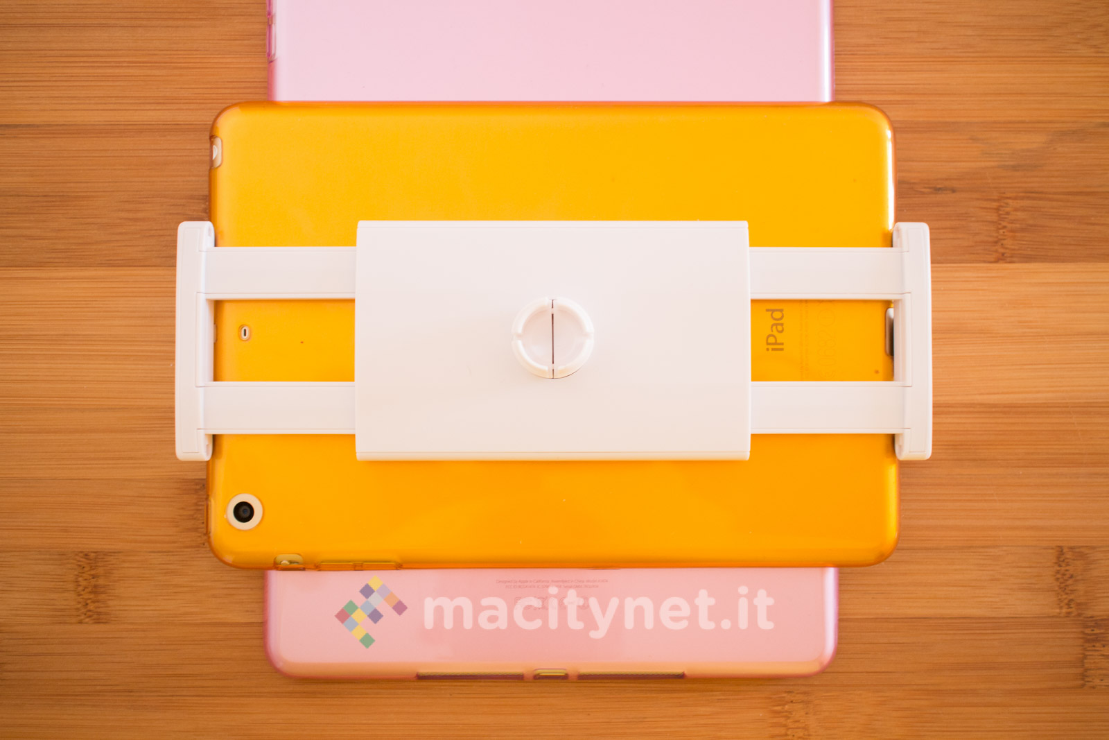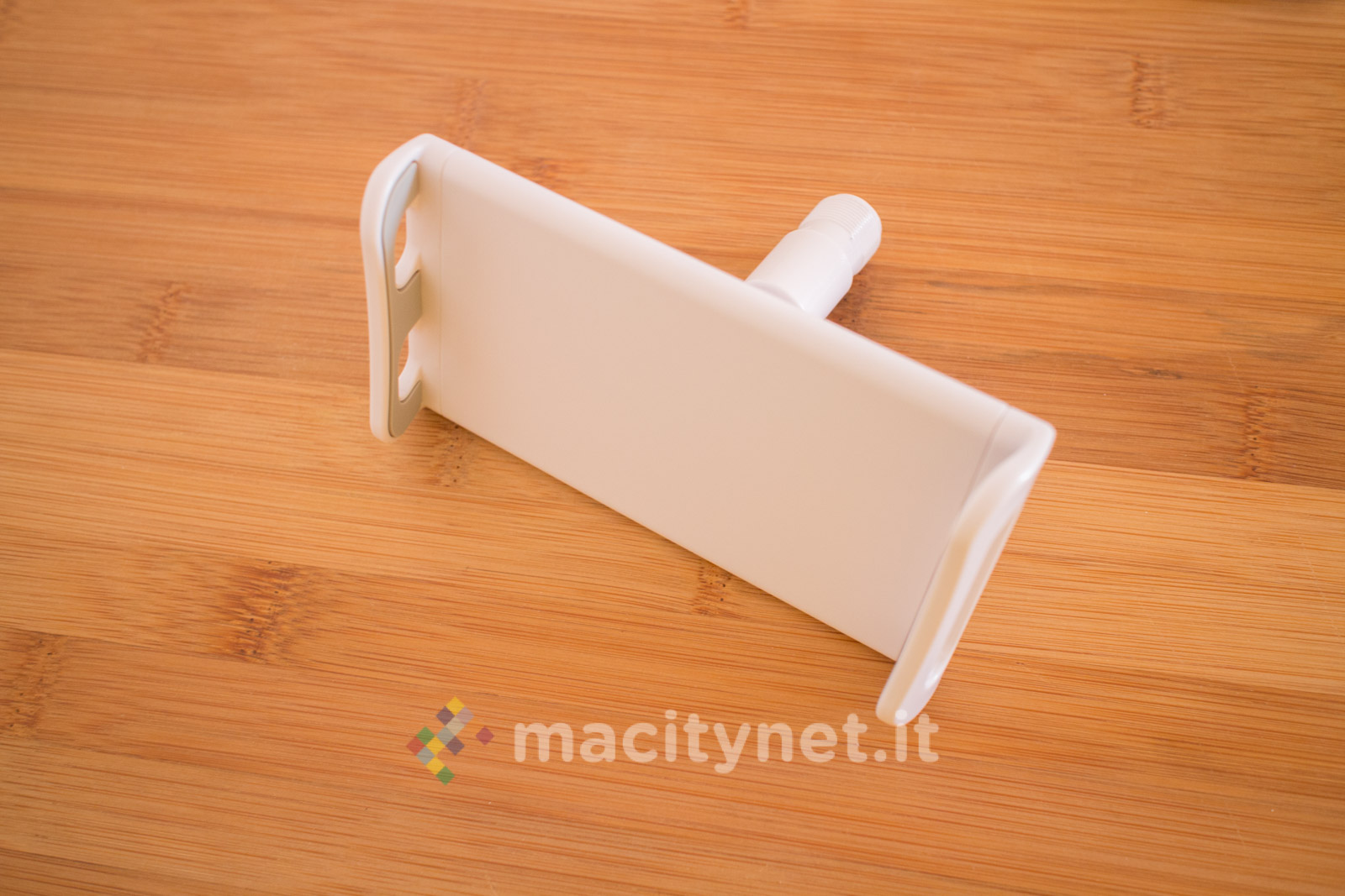 Come dicevamo all’inizio della recensione, uno dei punti di forza del prodotto riguarda proprio la sua compatibilità: non abbiamo riscontrato nessun problema con i nostri dispositivi, a partire da iPhone 7 che dovrà necessariamente essere aggrappato dai due lati corti, passando poi per iPad mini 3 ed iPad Air, ma l’estensione della morsa è tale che potrebbe addirittura assicurare l’aggancio di un tablet anche più grande, purché uno dei due lati non superi i 20 centimetri circa di lunghezza.