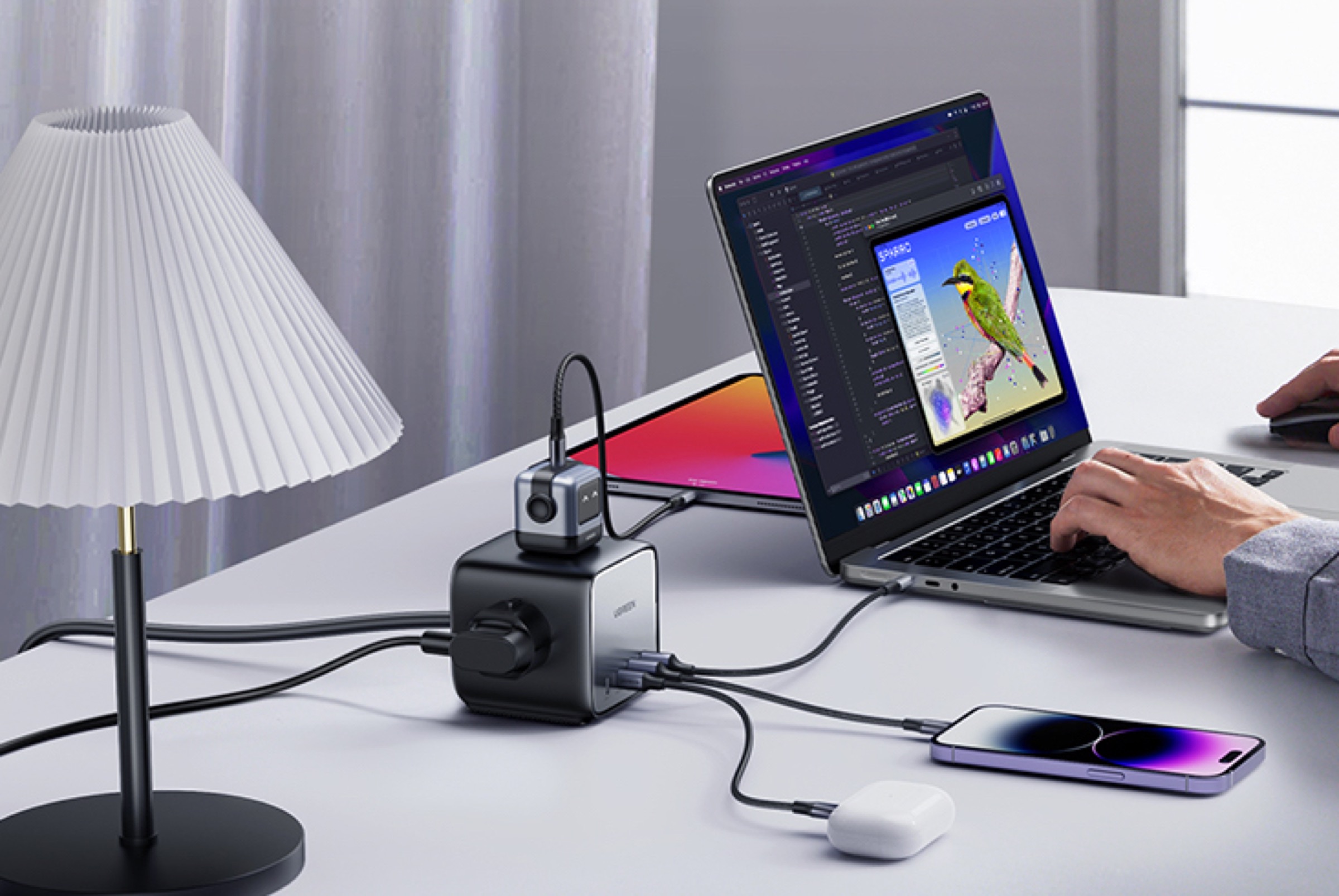 Ugreen Nexode DigiNest è un ottimo caricatore per chi cerca una soluzione di ricarica versatile e potente. Con la sua configurazione 7-in-1, questa ciabatta multipresa offre 3 porte AC (che supportano una potenza totale di 3680 Watt) e 4 porte USB (di cui 2 USB-C e 2 USB-A), rendendo possibile la ricarica di più dispositivi contemporaneamente occupando una sola presa di corrente.