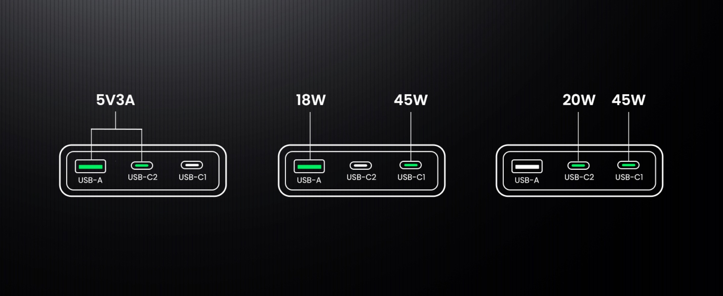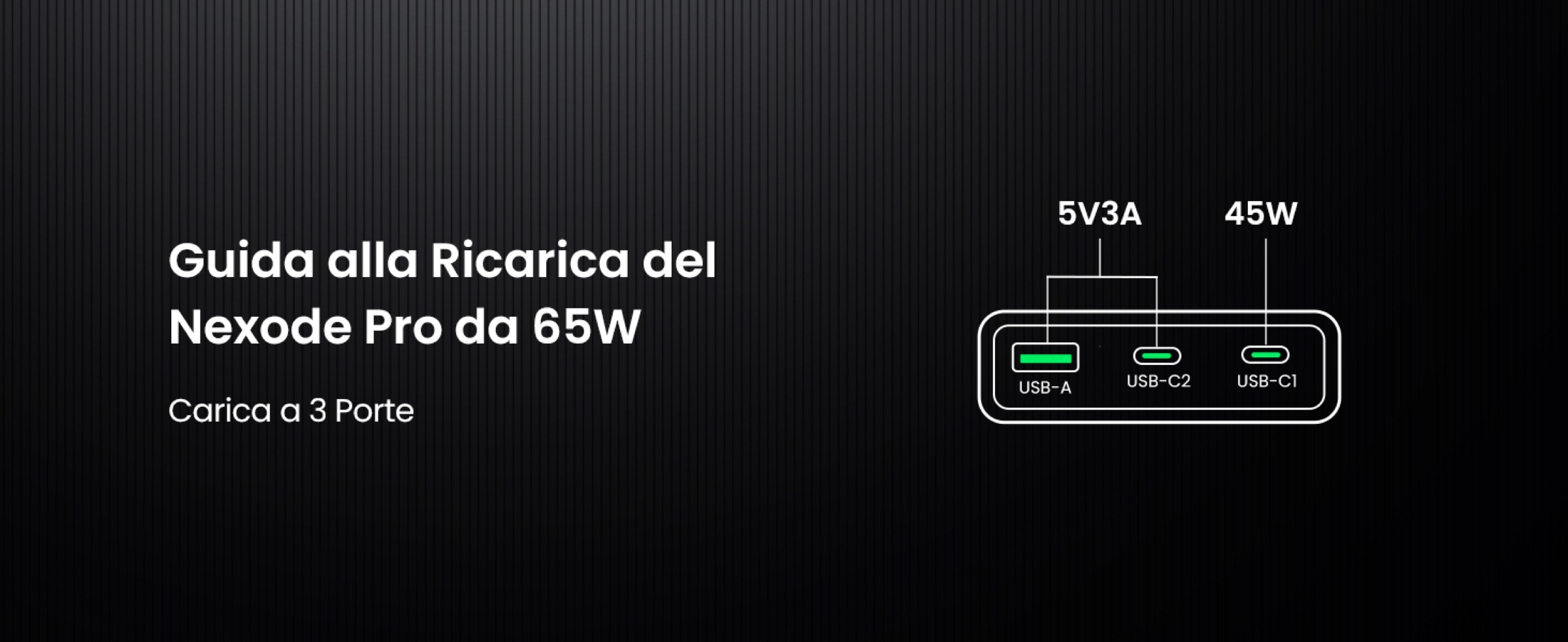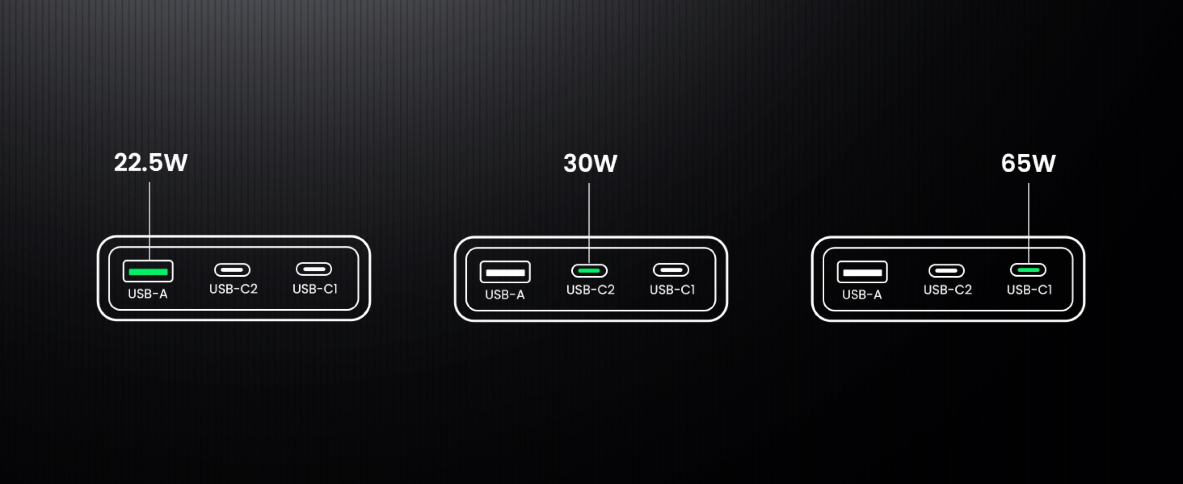 Come dicevamo poi è potentissimo: tenete presente che se si utilizza soltanto la presa USB-C1 può erogare fino a 65 Watt mentre collegando altri dispositivi alle uscite USB-C2 e USB-A l’uscita viene ridimensionata a 45 Watt, erogando però fino a 20 Watt sulla seconda USB-C e 3A sulla USB-A.