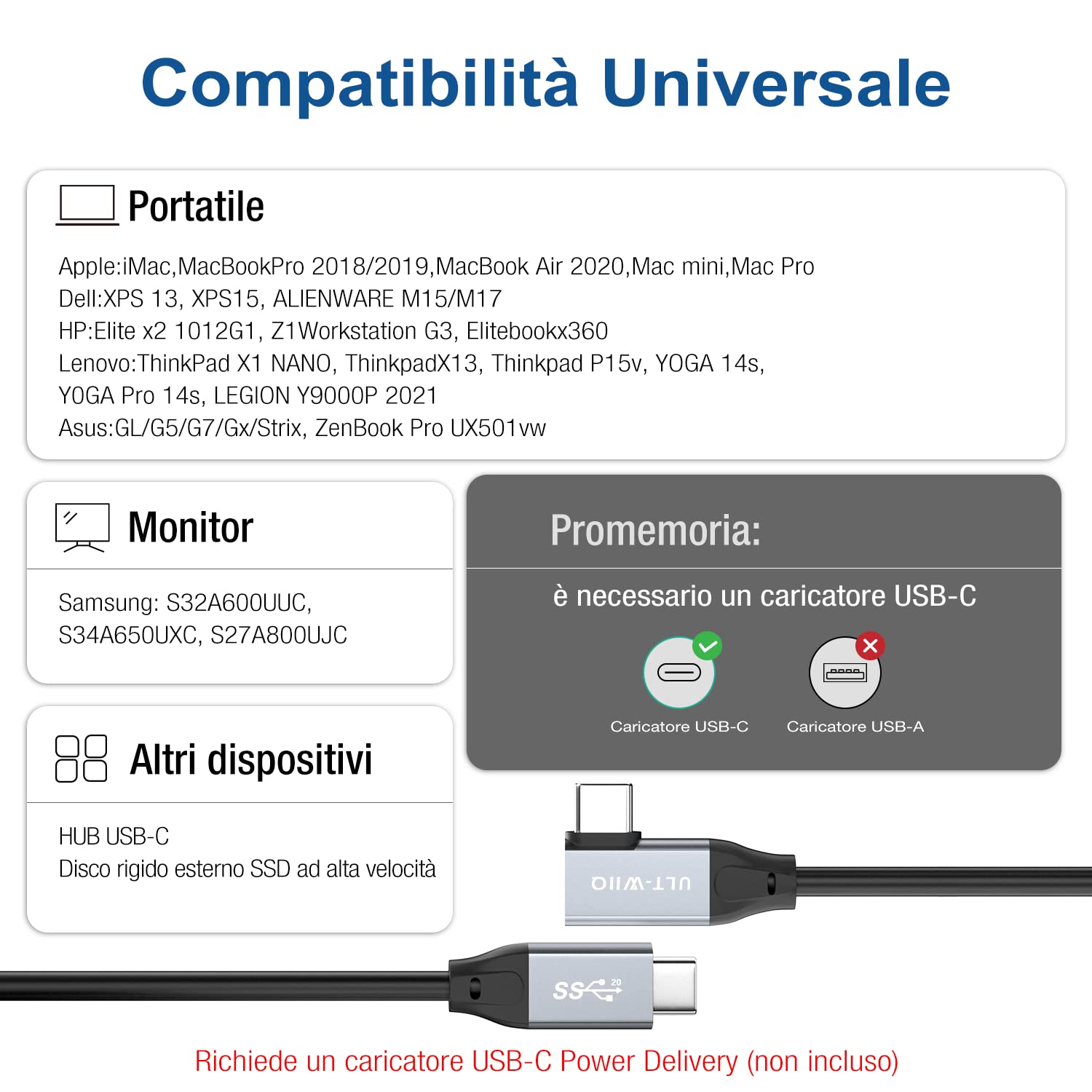 Sono caratteristiche utili per il video con i dispositivi che supportano la modalità DP Alt, supportando il trasferimento dei dati, l’ingresso dell’alimentazione e le funzioni di uscita video.