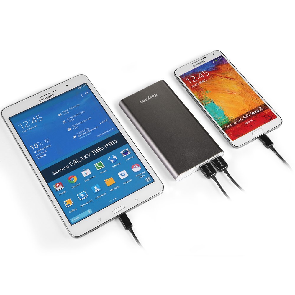 Questo accessorio, prodotto da EasyAcc, potrebbe non suonare del tutto nuovo. In fondo il fattore di forma è quello della PB8200M, e la capacità quella della economica versione in plastica che abbiamo presentato qualche tempo fa. Ma si distingue da tutto questo per alcuni fattori che abbiamo già sintetizzato in apertura: è in alluminio, ma offre due uscite di cui una delle due è da 2,1A, quindi in grado di ricaricare alla massima velocità un iPad e di dimezzare, rispetto alla velocità offerta dal caricabatterie di serie, il tempo di carica dei nuovi iPhone.