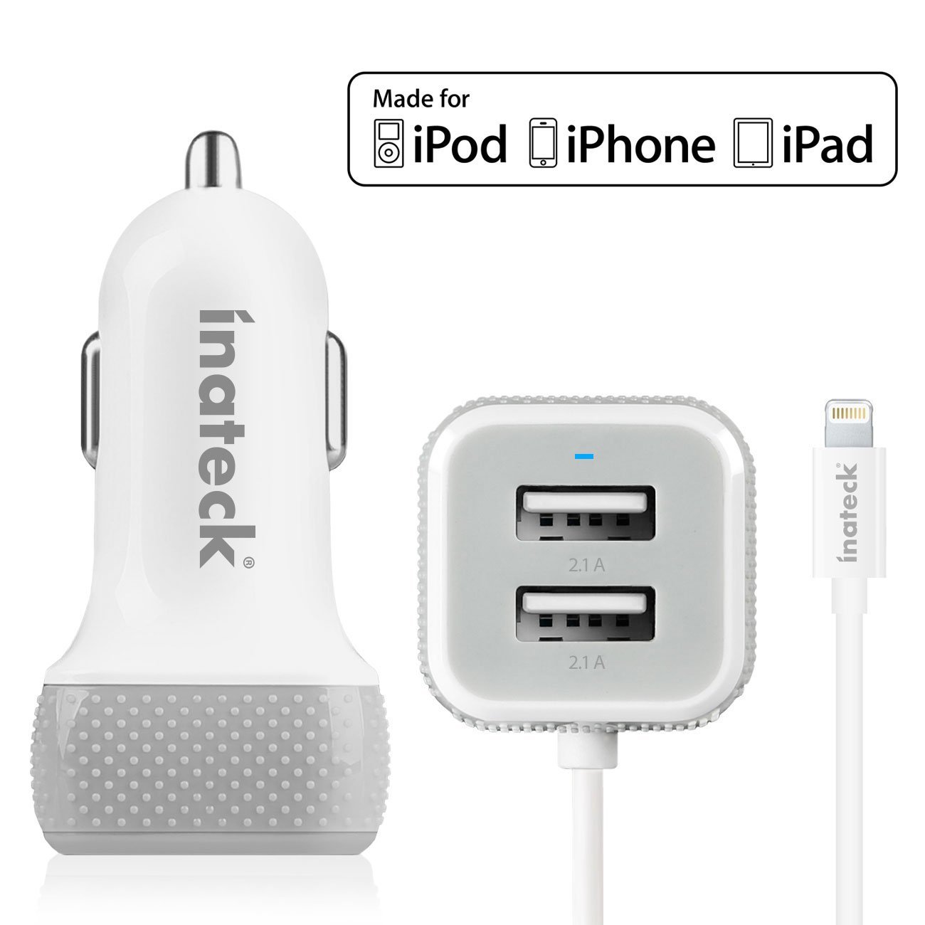 L’accessorio è quello che abbiamo recensito lo scorso agosto e sul quale abbiamo espresso un giudizio positivo. Segnato da cura costruttiva, buoni materiali e la certificazione ufficiale di prodotto MFi (quindi autorizzato da Apple), il caricabatterie si inserisce nella presa accendisigari e alimenta alla massima intensità possibile qualunque iPhone o iPad, questo grazie al cavo con spina Lightning integrato. Essendo un pezzo formato da alimentatore e cavo, non avrete bisogno di portarvi dietro un altro cavo, nè di gestire i due pezzi. Una volta terminato di usarlo, lo staccherete e lo metterete nel cassetto e prendendo il cavo, vi porterete dietro anche il caricabatterie. Ci sono anche due prese USB aggiuntive, così potete anche ricaricare fino a 3 dispositivi contemporaneamente ed alla massima potenza.