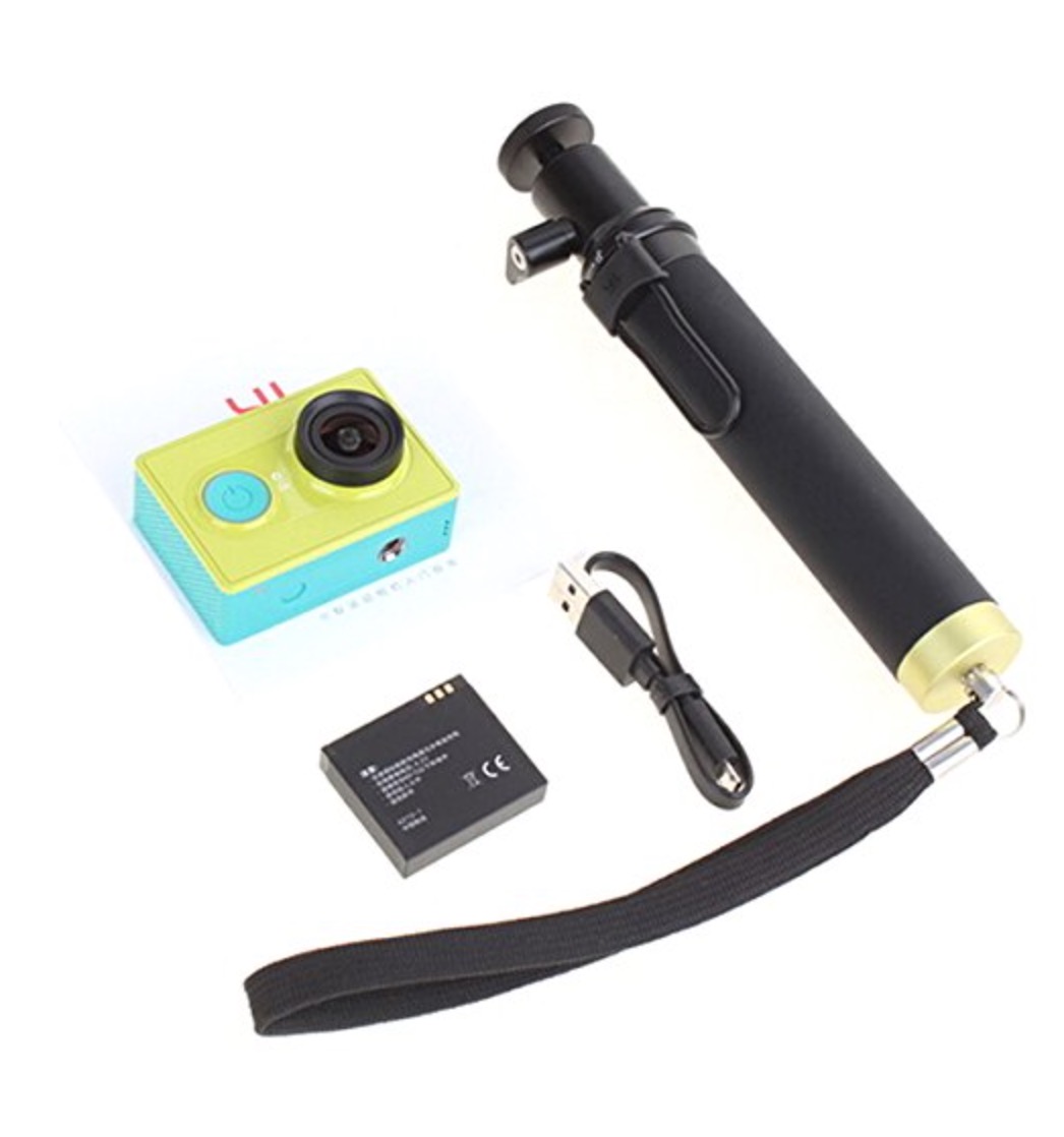 Insieme alla camera trovate una solida e ben costruita asta per selfie, progettata proprio per avvitare l’action cam. Si tratta di un accessorio moolto robusto, stilisticamente ineccepibile, realizzato in metallo. Grazie ad essa, potete così scattare fotografie o registrare video da angolazioni del tutto particolari, complici per l’appunto l’asta telescopica e la lente grandangolare della action cam.