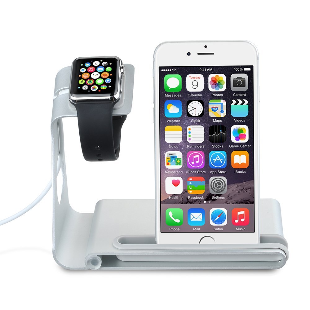Entrambe messe alla prova da Macitynet, la più economica (click qui per leggere la recensione) ha una struttura completamente in plastica. iPhone viene alloggiato su un incavo presente sulla base mentre Apple Watch resta sospeso in aria su una colonna centrale. I cavi di ricarica di entrambi vengono fatti passare ed incastrati in apposite scanalature, in questo modo si riduce il disordine dei cavi.