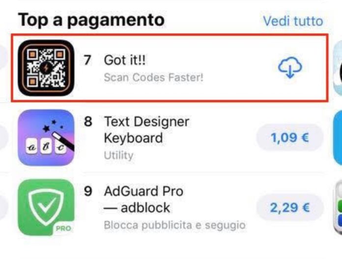 Stiamo parlando di Jacopo Antonio Causin e della sua App Got it!! che è un velocissimo scanner di QRCode che integra una IA ed altre funzionalità di livello avanzato, questa è la posizione di classifica di qualche giorno fa: