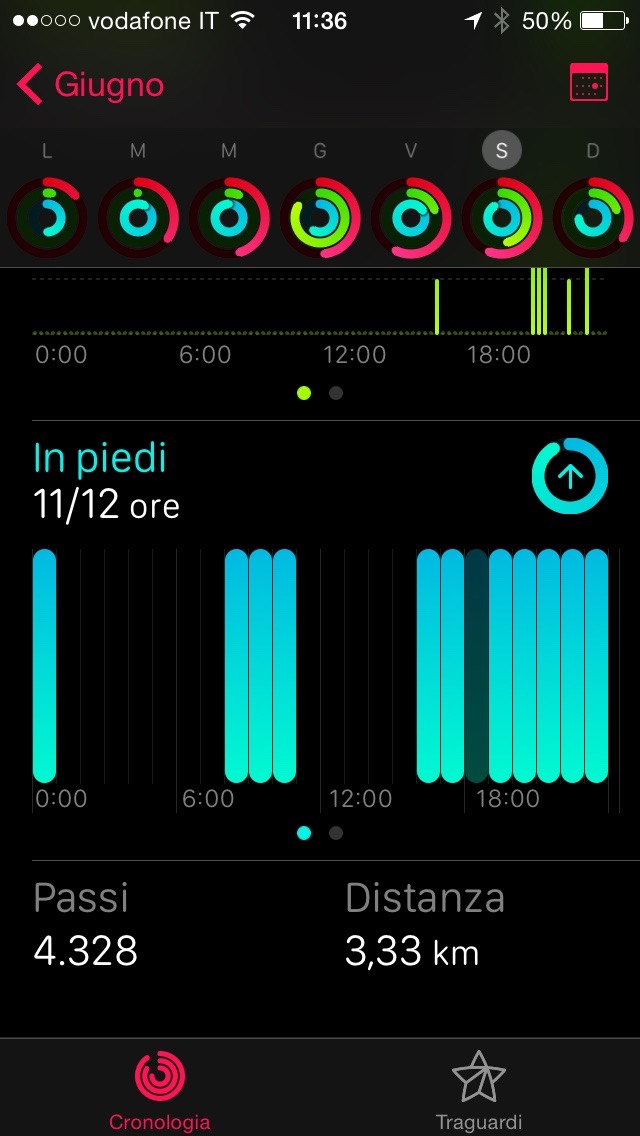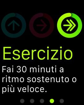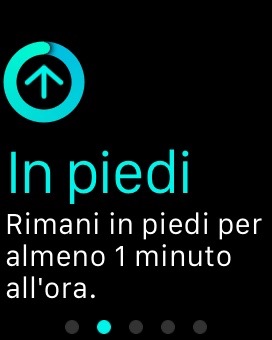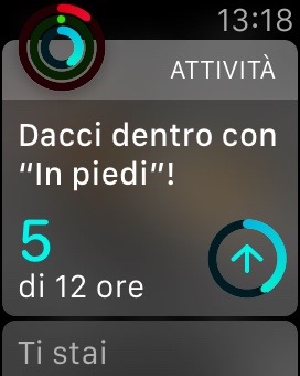 Partiamo dal più basso livello della sportività individuale: il supersedentario che passa ore seduto alla scrivania, o peggio ancora sul divano: Apple Watch comunica molto cortesemente con una vibrazione e un sottile avviso che nell’ultima ora non vi siete spostati dalla vostra seduta e v’invita a farlo ricordandovi che almeno 12 ore della vostra giornata dovrebbero essere passate con un minimo di movimento. Dobbiamo dire che il sistema di comunicazione funziona e, almeno nel nostro caso, è stato sufficientemente stimolante per farci sgranchire le gambe, anche se siamo sotto pressione.