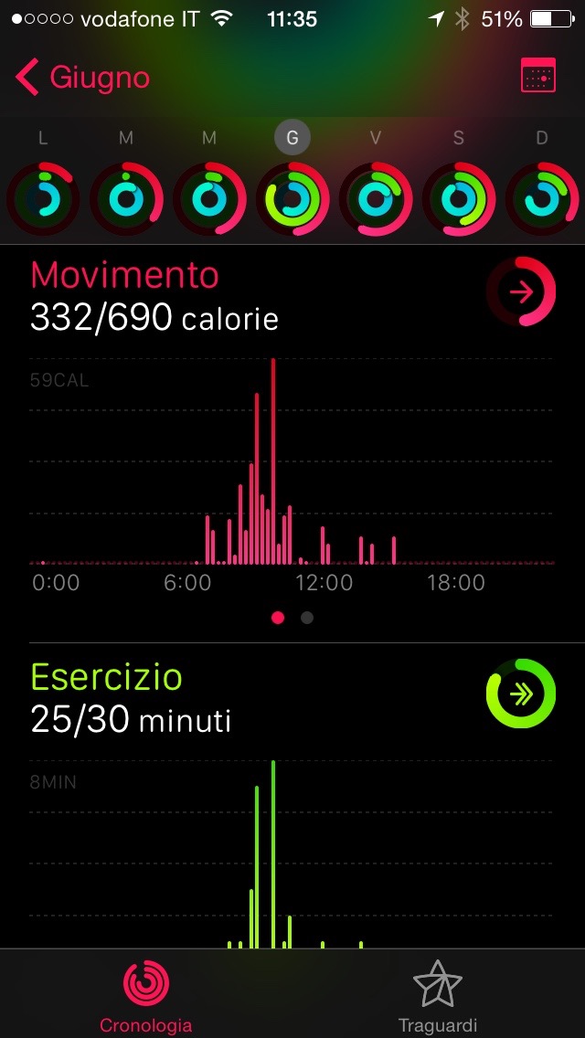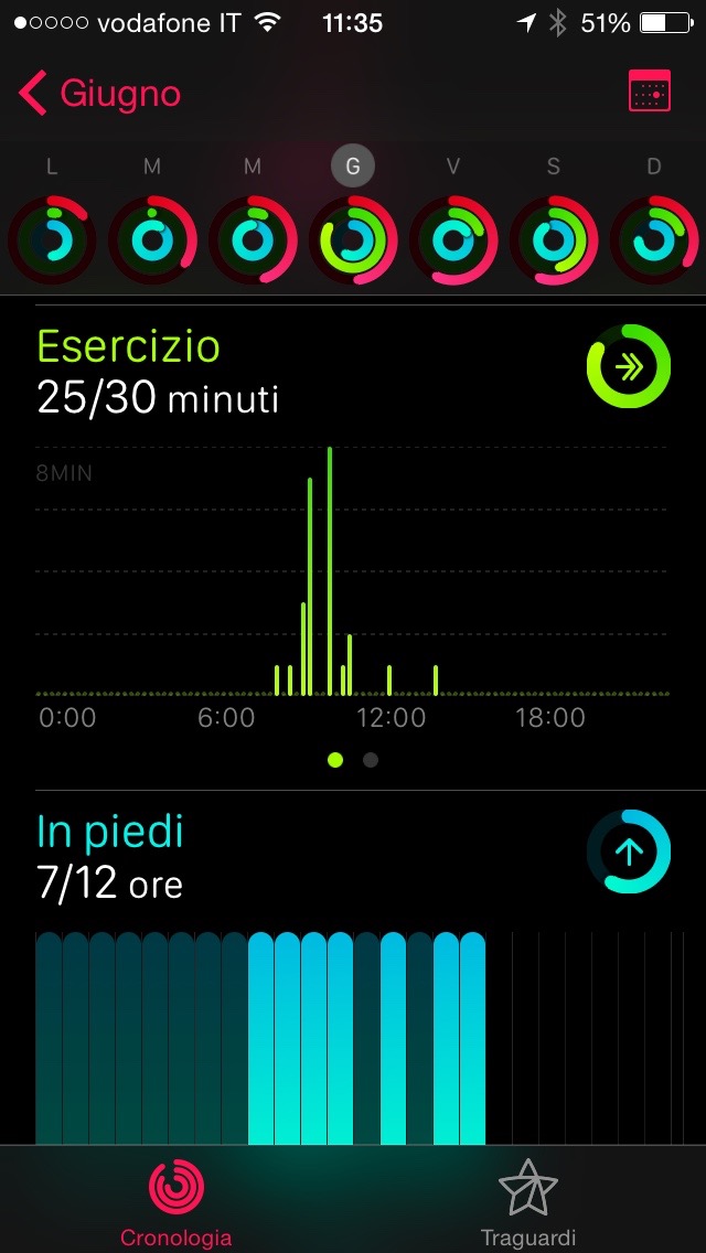 C’eravamo lasciati dopo una settimana d’uso di Apple Watch con un filmato e le primissime impressioni d’uso e vi avevamo riferito come ormai l’abitudine a usarlo aveva spazzato via la volontà di avere il polso libero da qualsiasi impiccio. Ovviamente dopo 45 giorni il nostro giudizio sulla batteria rimane lo stesso: 18 – 20 ore d’uso sono il principale impaccio nell’utilizzo di questo oggetto e costringono ad abituarsi a un rito, quello della ricarica, che si aggiunge alla gestione parallela del telefono e impedisce di fatto l’uso dello smartwatch per il rilevamento delle abitudini di sonno. Nella prima parte della recensione avevamo trascurato diversi aspetti e rimandato a una seconda parte con l’uso delle applicazioni per lo sport.
