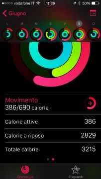 Il secondo livello di comunicazione è quello concernente la conta dei passi e delle calorie bruciate, disponibili anche queste nelle applicazioni standard e quindi sempre immediatamente disponibili.