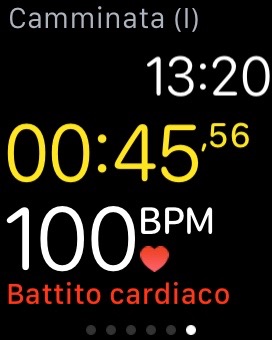 Quando iniziamo il nostro allenamento, dopo un simpatico conto alla rovescia, parte anche il cardiofrequenzimetro e potremo tenere sottocchio il tempo trascorso, il passo, la distanza, le calorie e infine il battito cardiaco: tutte comunicazioni che saranno mostrate girando l’orologio verso di noi.