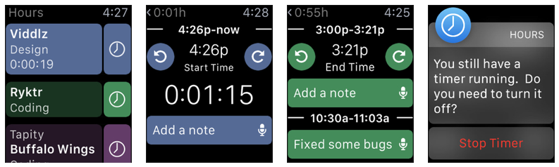 L’altra opzione intelligente per chi lavora sono le applicazioni tipo Evernote con reminder che vi permettono di organizzare meglio la giornata e i compiti e sopratutto i software di “time tracking” (conteggio orario) come Timely e Hours (qui sotto) che vi mettono in grado di gestire le ore di lavorazione a particolare progetti e di consulenza da suddivedere per diversi clienti. Non c’è nulla di meglio di uno strumento da polso per gestire rapidamente il tempo, non solo in fase di lettura ma anche di scrittura e classificazione.