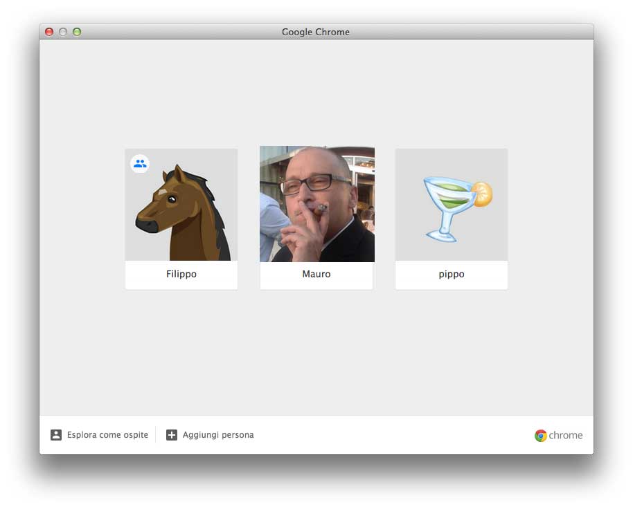 Ricordiamo che la possibilità di aggiungere più utenti a Chrome ha lo scopo di fornire un metodo facile e veloce per configurare copie personalizzate di Chrome per persone che utilizzano già Chrome sullo stesso computer. Non ha lo scopo di proteggere i dati in modo che non possano essere visualizzati da altre persone che utilizzano il computer. Per proteggere i dati in modo che non possano essere visualizzati da altri, è fondamentale usare gli account utente integrati nel sistema operativo: a questo scopo su Mac basta selezionare dalle Preferenze di Sistema la voce “Utenti e gruppi” per creare nuovi account.