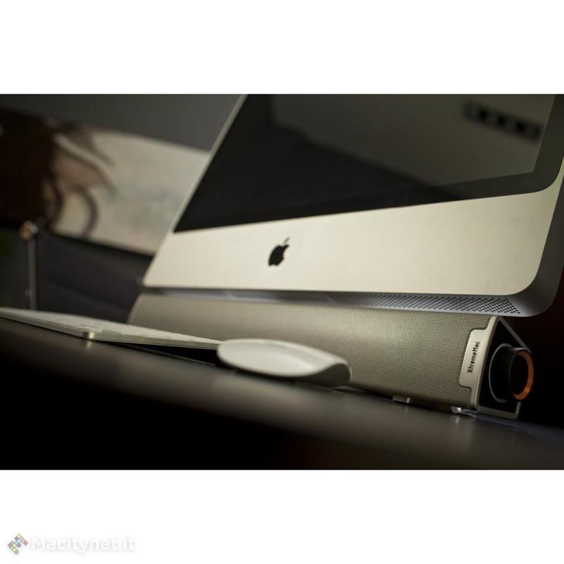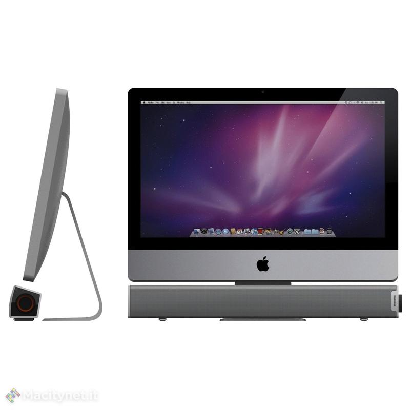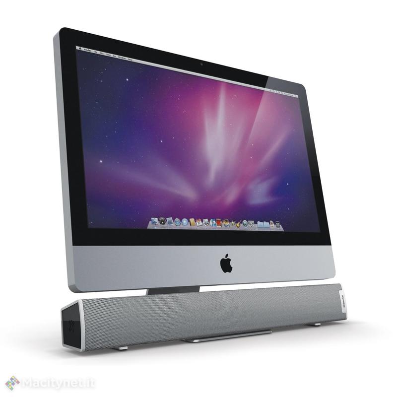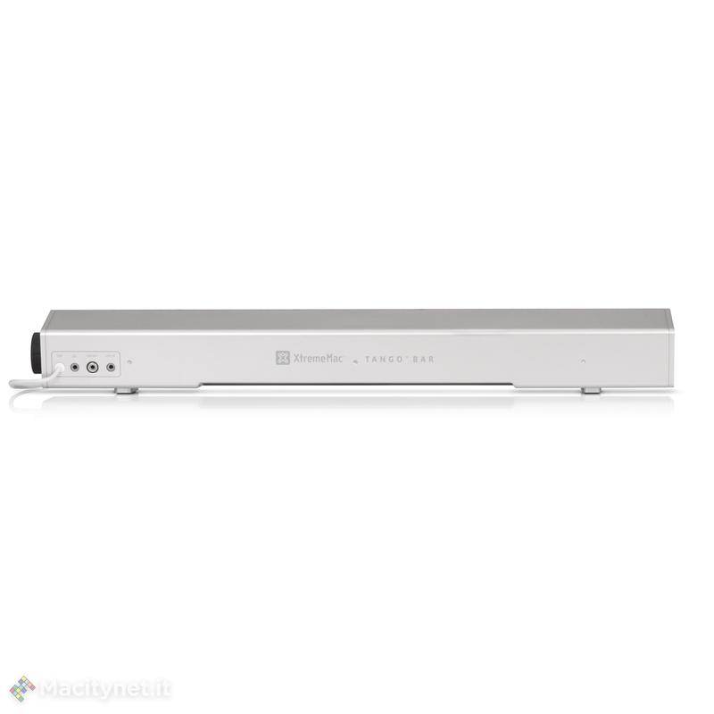 La Tango Bar è un prodotto stilisticamente e tecnologicamente studiato proprio per gli all in one di Apple. Si tratta di un altoparlante amplificato da 10 watt connesso via USB per l’alimentazione e l’audio. Ha una configurazione a sei altoparlanti, con doppi tweeter a cupola, midrange/bass driver e radiatori passivi per un suono potente e di buona qualità; grazie ad essa possiamo trasformare iMac in un vero e propria postazione per l’intrattenimento con molteplici funzioni: ascolto musica, gioco, visione di film, videoclip, proiezione diapositive.