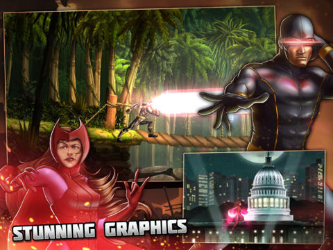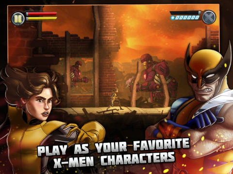 L’utente controlla Wolverine, Kitty Pride, Colossus, Cyclops e Scarlet ognuno dotato di colpi e abilità speciali che possono essere potenziati durante l’avventura. E’ possibile scegliere tra due sistemi di comandi diversi che prevedono pulsanti virtuali su schermo oppure gesture e tap direttamente sulla fienestra di gioco. Per assicurare il massimo coinvolgimento alla scrittura del gioco ha collaborato Josh Fine, produttore di Wolverine e di X-Men, mentre nel corso delle varie missioni è possibile scoprire diversi indizi e contenuti speciali nascosti basati sui 50 anni di storia degli X-Men, tra cui biografie complete dei personaggi, copertine di fumetti, bozze e disegni originali e molto altro ancora.