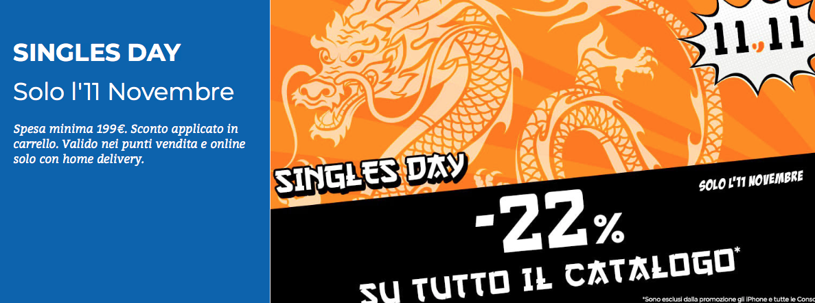 Sconto 22% Unieuro su tutta l’elettronica (anche Apple) da 199 Euro in su e solo per oggi 11.11