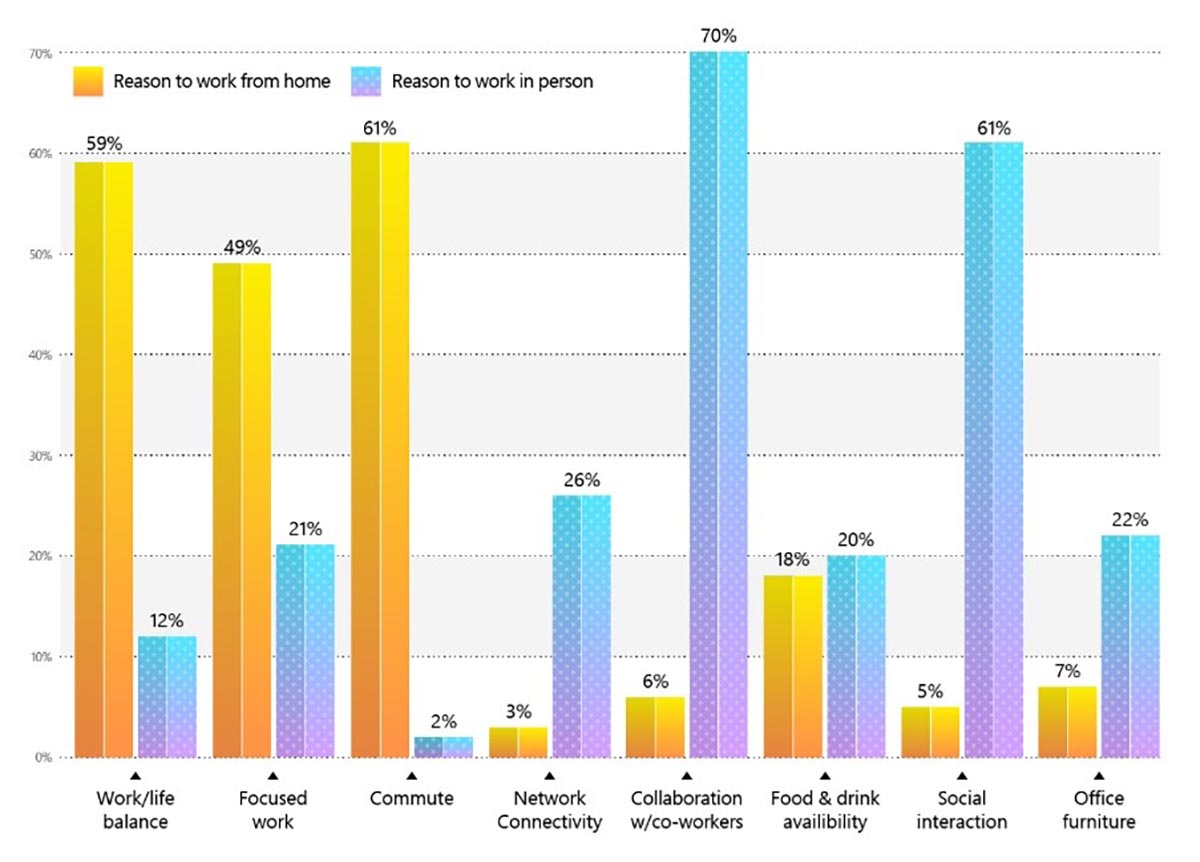 Uno degli studi, raccogliendo le opinioni dei dipendenti in vari Paesi, evidenzia che il 58% tra quelli che trascorrono la maggior parte del tempo in ufficio e di coloro che prevedono di trascorrervi il minor tempo possibile lo fa per la stessa ragione: maggior focalizzazione sul lavoro.