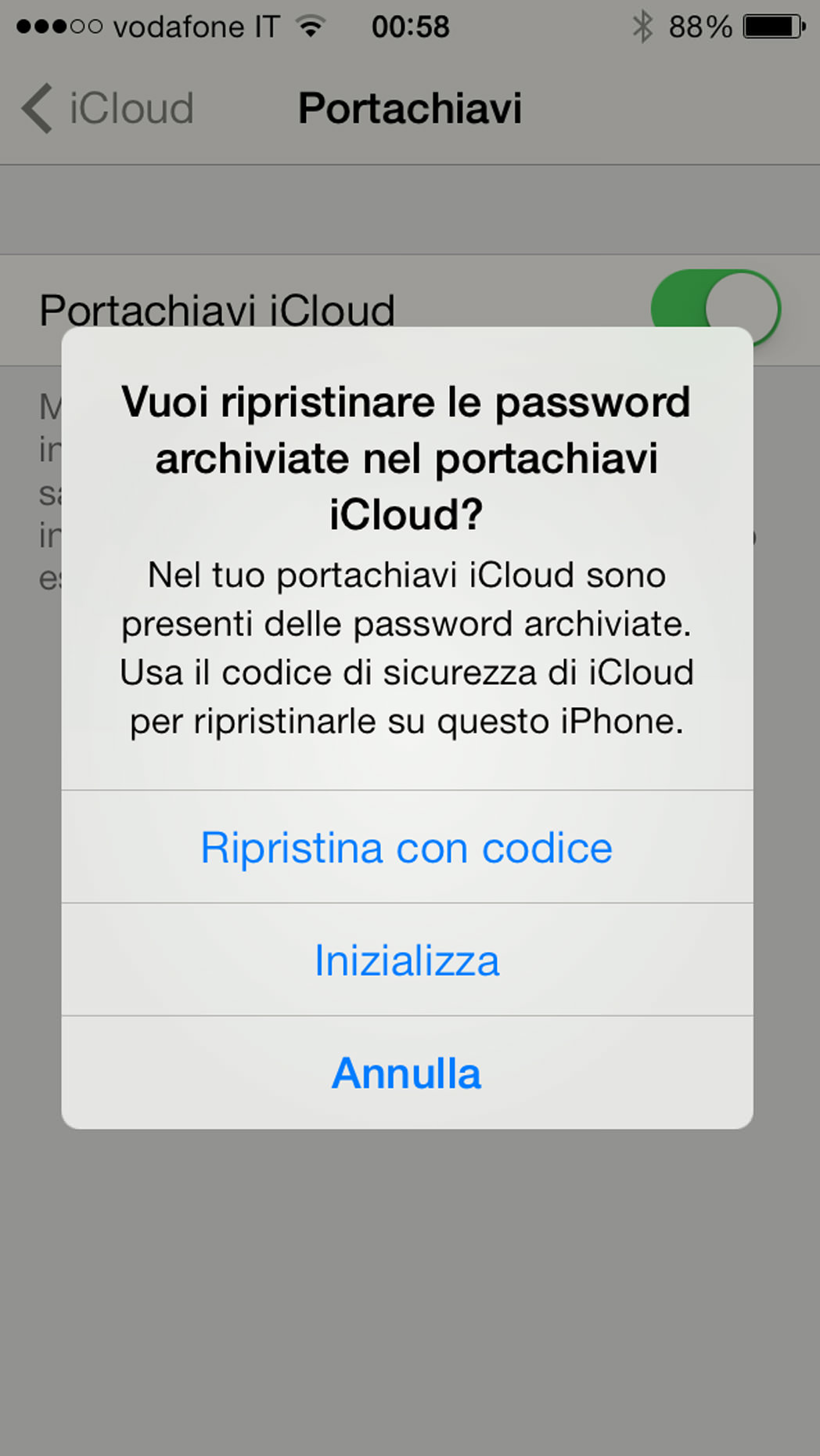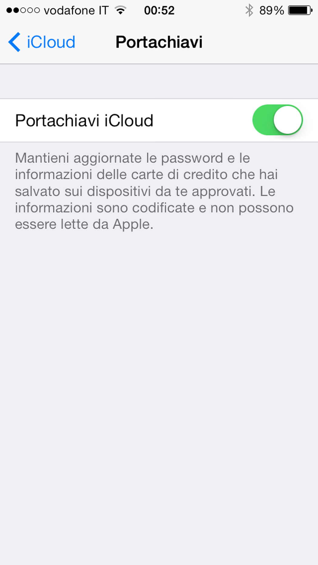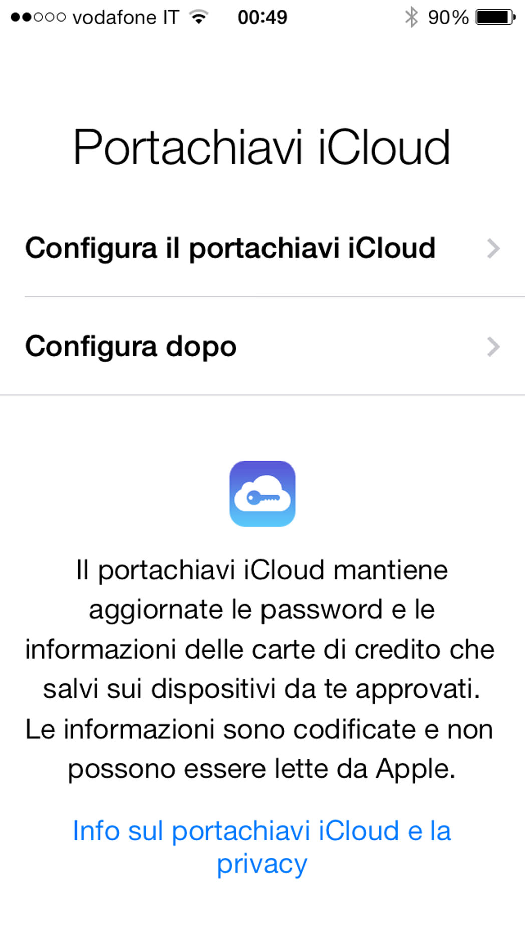 Una volta terminato questo processo Impostazioni–> Generali –> iCloud troveremo attivato “Portachiavi iCloud.