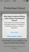 Se vogliamo abilitare un dispositivo aggiuntivo per la sincronizzazione avremo due possibilità: usare il dispositivo “madre”, sul quale vedremo apparire un messaggio che ci invita ad introdurre la password dell’Apple ID, oppure usare il codice di sicurezza e il numero a sei cifre che ci sarà inviato via SMS usando il numero di telefono settato in precedenza, all’atto di attivazione di Portachiavi iCloud.