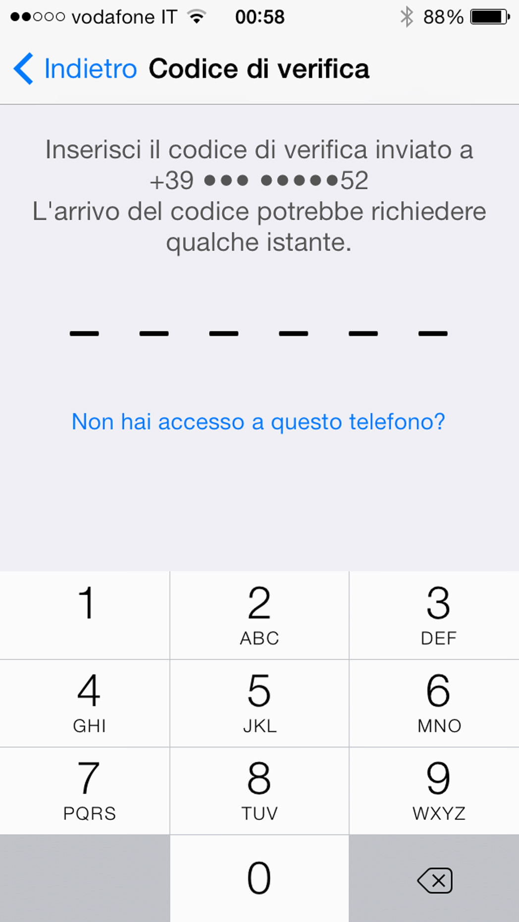 Nel momento in cui avremo installato l’aggiornamento ad iOs 7, il sistema operativo ci chiederà di configurare iCloud e poi successivamente se vogliamo configurare Portachiavi iCloud. In questo processo ci verrà chiesto un numero di telefono che ci permetta di ricevere SMS. Si tratta di una delle componenti del sistema di sicurezza a due fattori che Apple usa per dare maggior solidità al sistema.