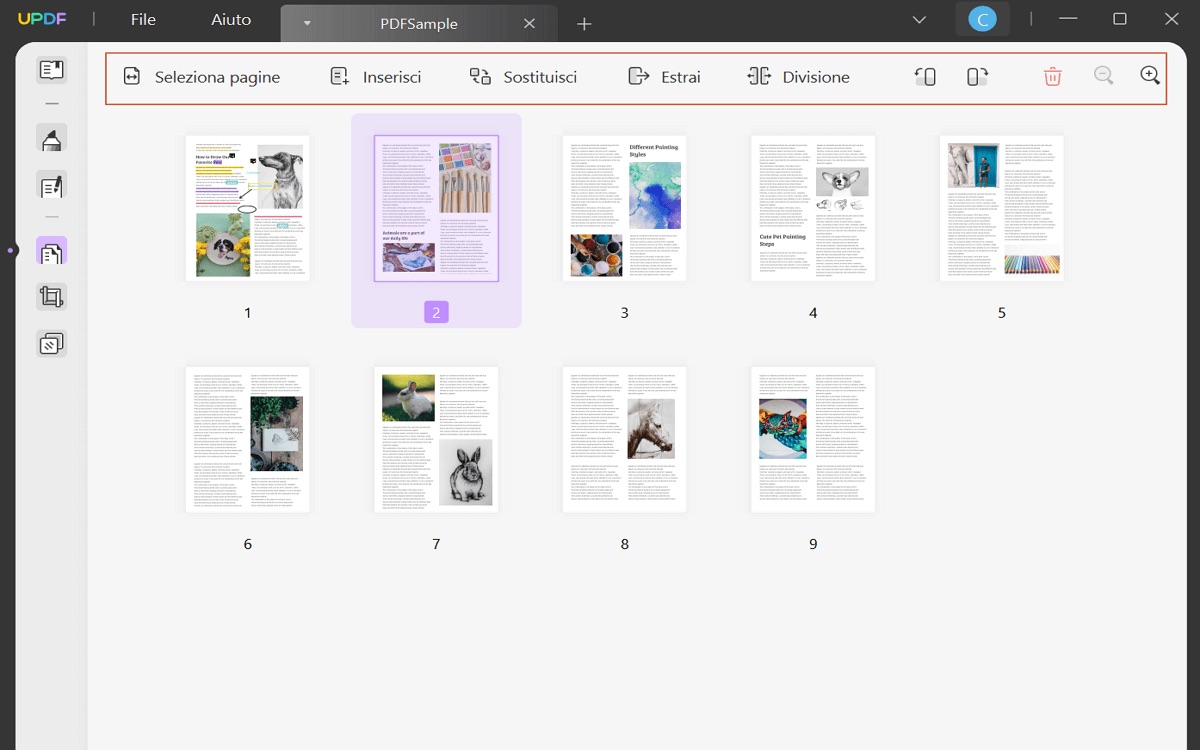 - Organizzazione di PDF (riordino, eliminazione, inserimento, suddivisione, estrazione, sostituzione e rotazione delle pagine)