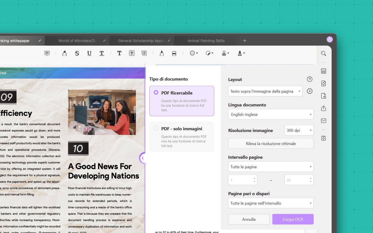 UPDF è la scelta perfetta per chi cerca un modo semplice e veloce per gestire i propri PDF. Con UPDF, puoi facilmente modificare i tuoi PDF con solo pochi clic. Inoltre, UPDF supporta l’OCR, la tecnologia di riconoscimento ottico dei caratteri, per convertire il testo in PDF acquisiti tramite scanner in testo modificabile.