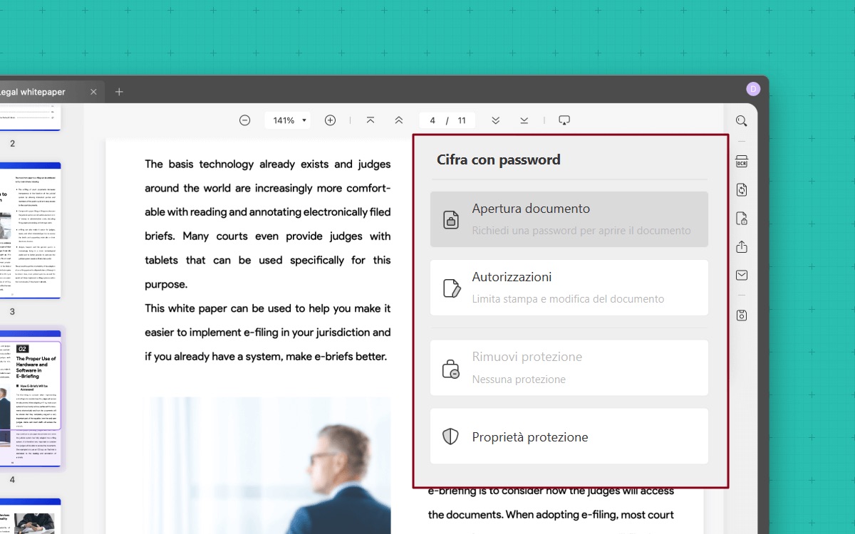 - Criptazione di PDF: impostazione di password di autorizzazione e apertura