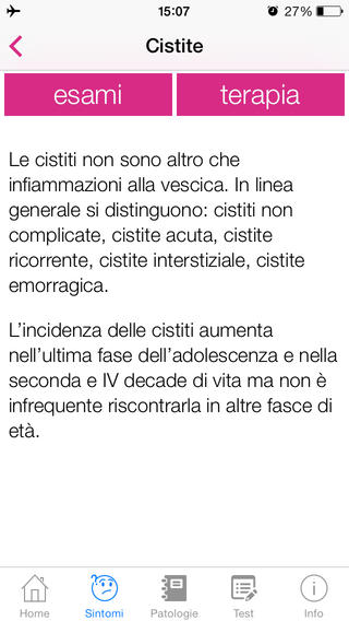 Grazie all’interfaccia e ai menu di facile utilizzo e consultazione è possibile indicare i sintomi per risalire alle probabili patologie urogenitali, per proseguire poi con l’indicazione degli esami di laboratorio e anche alle terapie mediche e chirurgiche per il probabile disturbo. Dopo aver indicato età e sesso del paziente, l’app indica i sintomi disposti in ordine di frequenza. E’ possibile selezionare fino a tre sintomi, per incrementare le possibilità di una diagnosi corretta, successivamente vengono visualizzate le patologie elencate in ordine alfabetico.