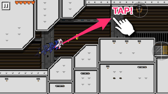 Il termine UsagiMan, può essere tradotto con buona approssimazione come Uomo Coniglio. Infatti, il protagonista di gioco sarà un atletico coniglio, che utilizza soltanto un rampino per spostarsi da una parte all’altra dello schermo. Non ci sono croci direzionali, né tantomeno tasti azione da utilizzare. Tutto ciò che l’utente dovrà fare, sarà premere a schermo. Ad ogni tocco, il coniglio sgancerà l’uncino per dirigersi verso l’area dello schermo desiderata. Allo stesso modo, toccando i nemici, si riuscirà a sopraffarli.