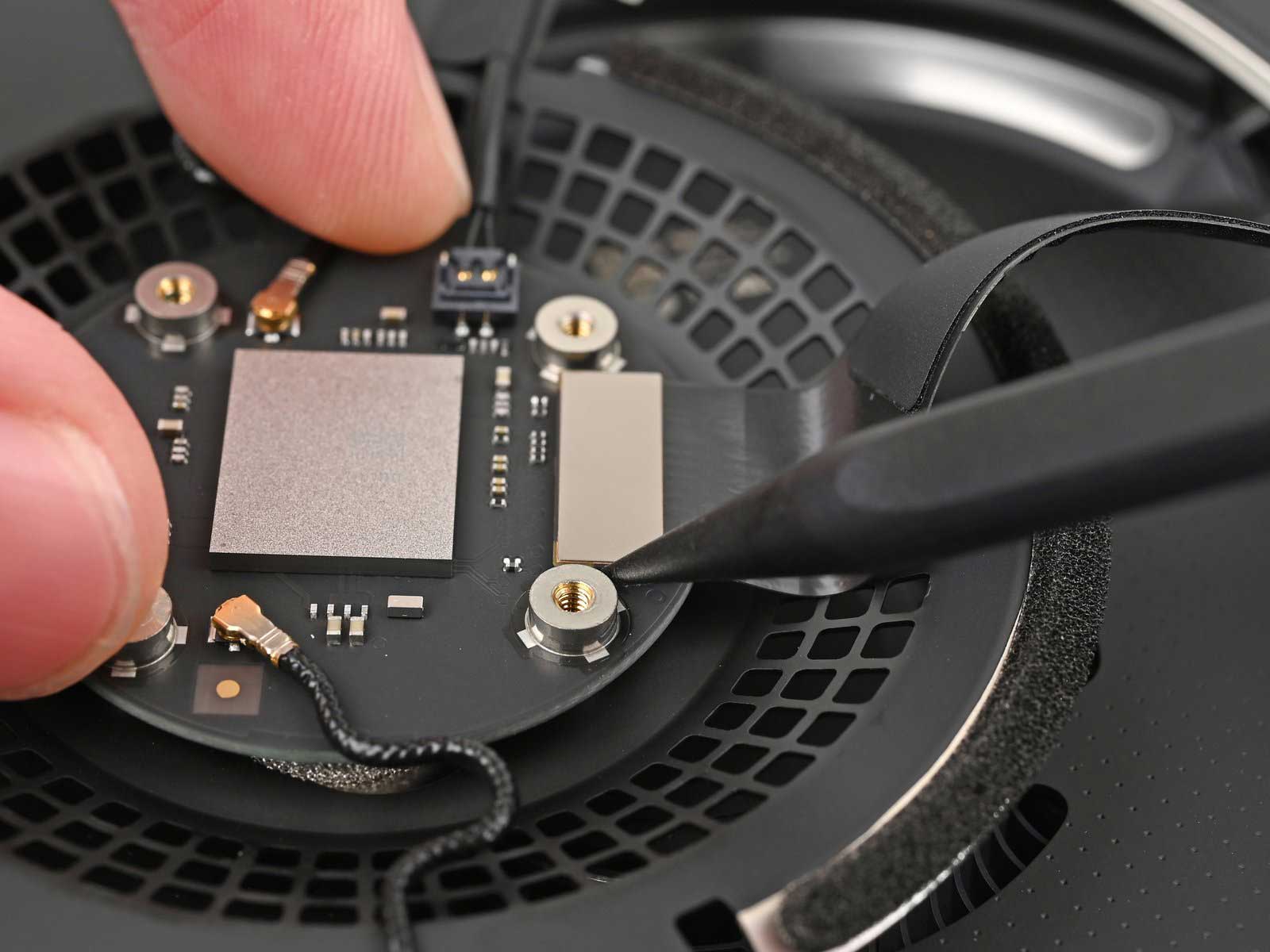 Nel Mac mini M4 il modulo WiFi è posizionato nella parte inferiore della macchina, collocato sopra la piastra interna che è possibile vedere dopo aver rimosso le viti del coperchio inferiore.