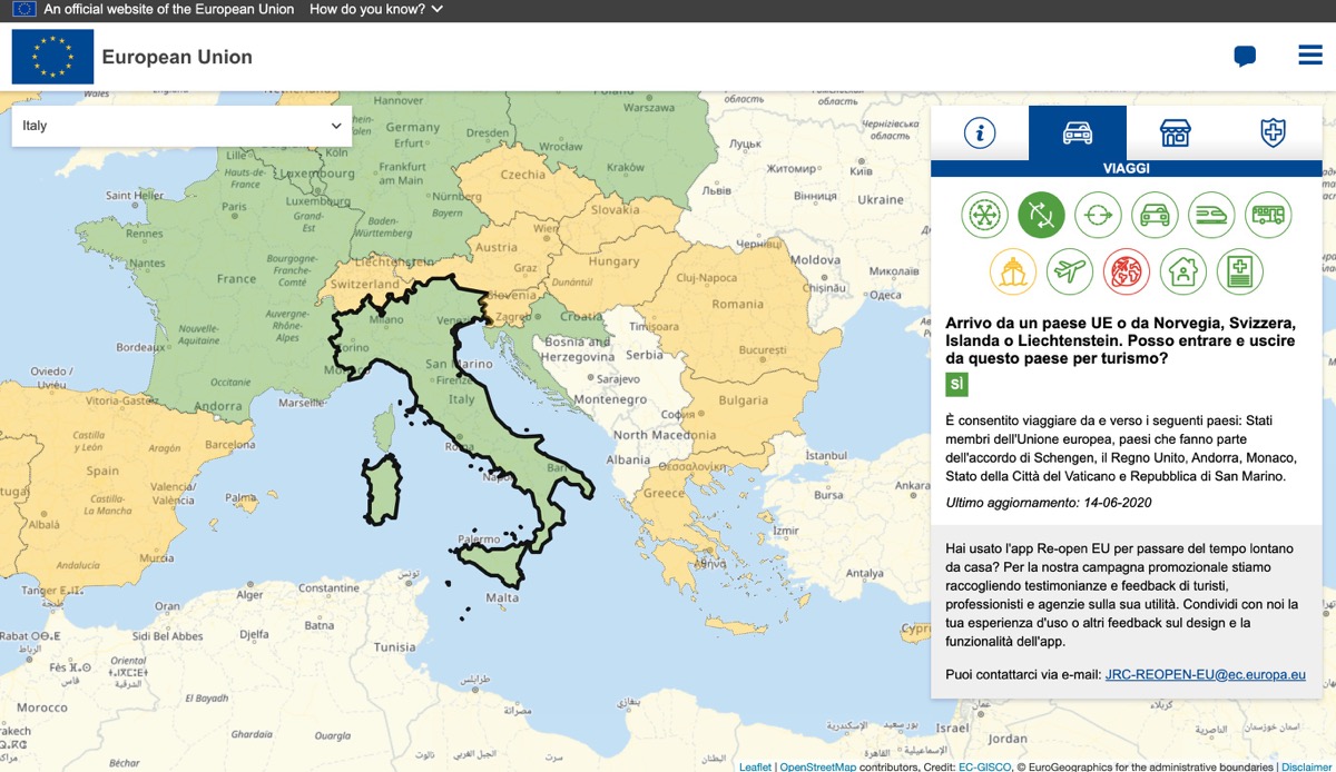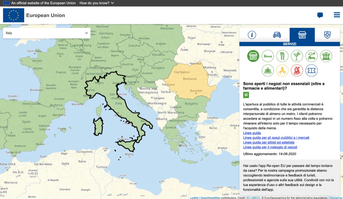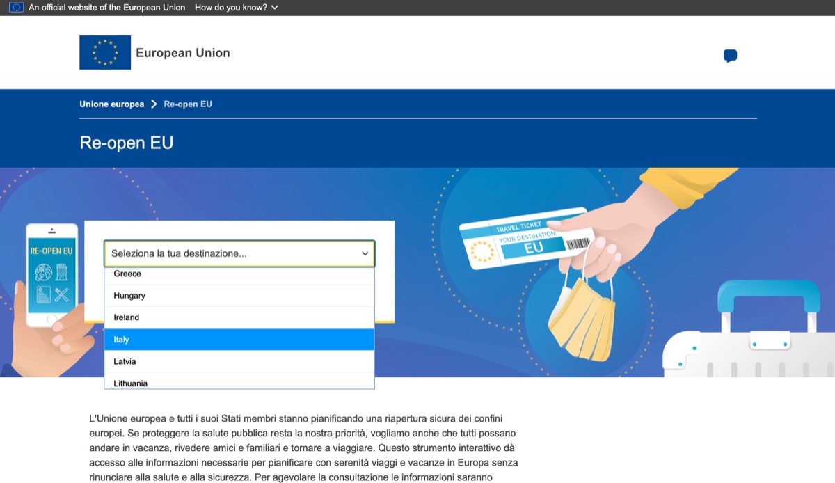 L’interfaccia così come le informazioni riportate sono localizzate in 24 lingue diverse e l’italiano è tra queste. Potete accedere a Re-open EU cliccando direttamente qui mentre più avanti sarà resa disponibile anche come applicazione per smartphone. Se invece volete saperne di più su come utilizzare il Bonus Vacanze 2020 previsto dal governo, potete leggere questo nostro approfondimento.