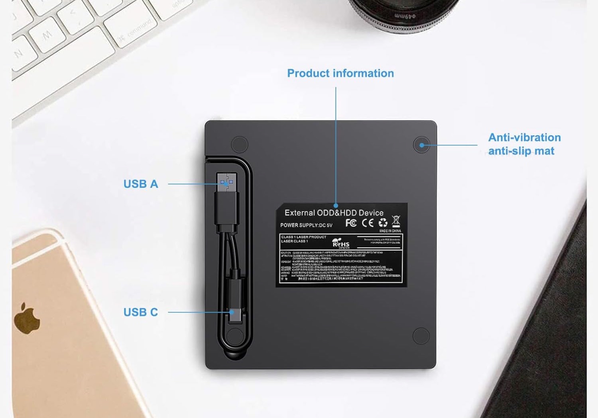 Il lettore/masterizzatore-CD/DVD di ORIGBELIE che vi segnaliamo in questo articolo si collega ai computer in modo rapido e semplice grazie alla connessione USB-A 3.0 o, per i modelli più recenti, tramite la USB-C.