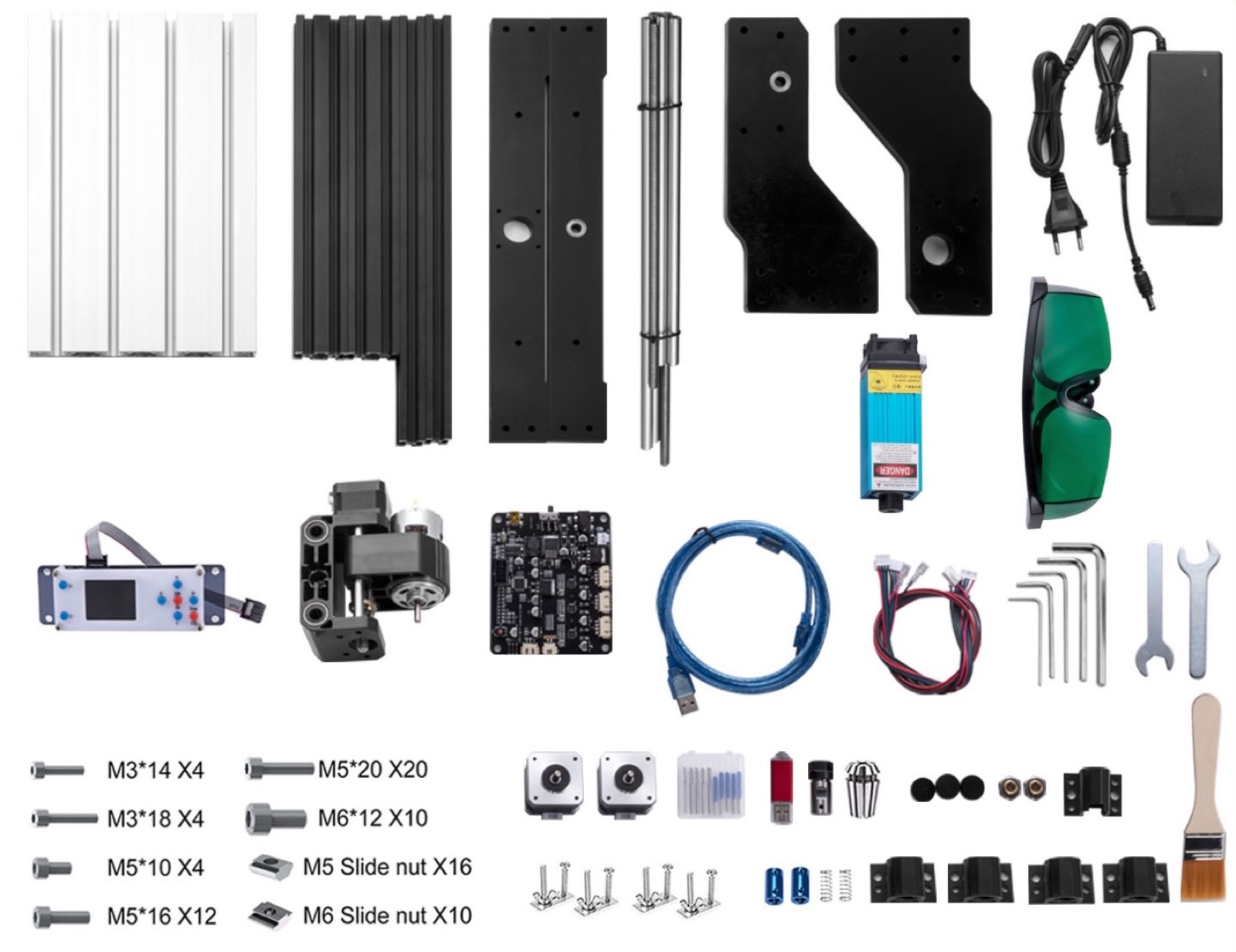 Si tratta di una macchina che usa un laser da 500 mW per incidere, intagliare e fresare un’ampia varietà di materiali. Si va dai più comuni come plastica, legno e pelle ad alluminio morbido, acrilico, PVC, PCB e molti altri.