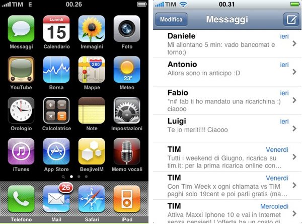 La prima differenza che salta all’occhio è rappresentata dall’icona nella springboard, che ora perde la sigla “SMS” evidentemente a indicare che adesso il pulsante dà accesso non solo ai semplici messaggi di testo ma anche ai messaggi multimediali: gli MMS.