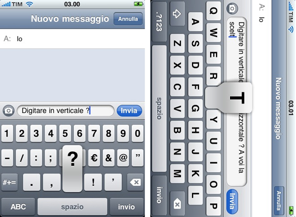 Se precedentemente grazie all’accelerometro era possibile ruotare la tastiera in orizzontale solo all’interno di Safari , adesso è possibile farlo anche durante la digitazione degli SMS: la tastiera orizzontale, più grande e  con tasti più distanziati, consente una digitazione molto più rapida e precisa.