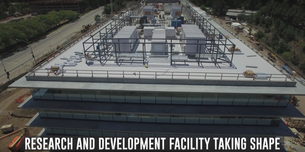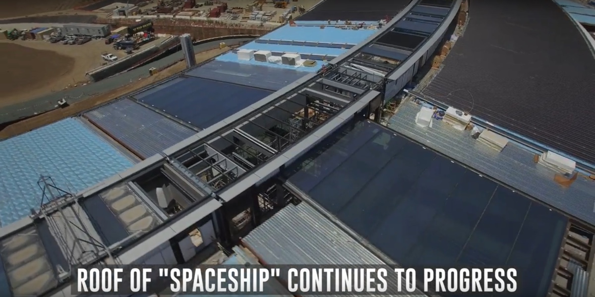 Il nuovo video Apple Campus 2 di giugno mostra progressi consistenti in tutti gli edifici che compongono il nuovo fantascientifico quartiere generale di Cupertino. Nel filmato 4K realizzato da Matthew Roberts, che riportiamo in questo articolo, sono visibili immensi pannelli solari già installati sul tetto dell’edificio principale a forma di astronave: altri pannelli delle stesse dimensioni sono posizionati nel cortile interno della struttura in attesa di essere installati.