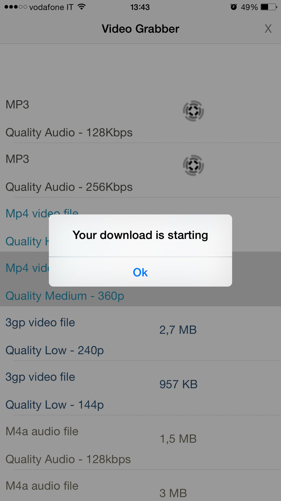 Una volta che infatti avremo cliccato l’apposita icona e selezionato il formato video da scaricare, potremo chiudere la scheda e visitare un altro sito web, chiudere Safari ed utilizzare una qualsiasi altra applicazione oppure cercare un altro video ed avviarne il download, fino ad un massimo di 10 video contemporaneamente. L’applicazione infatti lavora silenziosamente in background permettendoci di fare qualsiasi altra cosa senza dover lasciare l’iPhone attivo o mantenere l’applicazione aperta. Oltre a Safari supporta Google Chrome, Opera e qualsiasi altro browser mobile disponibile su App Store, eccetto applicazioni come ProTube che, stando ai nostri test, al momento non risulta compatibile con Video Grabber.