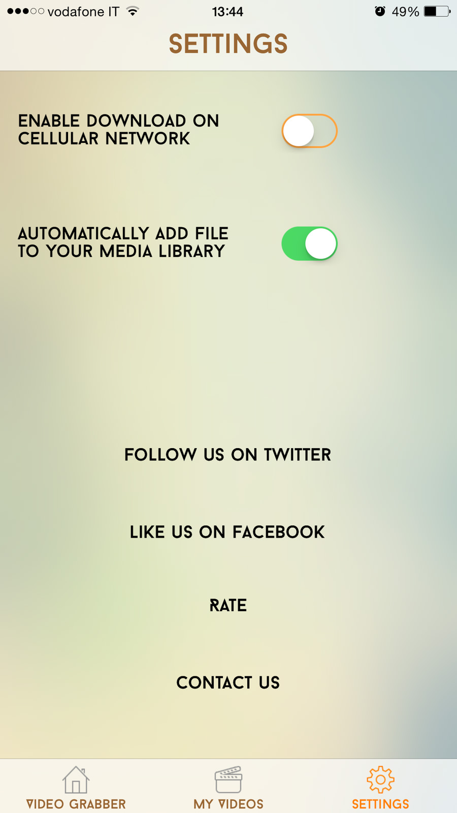 Dalle impostazioni è possibile disattivare il download su rete cellulare, evitando così di consumare inconsapevolmente preziosi dati durante il download di un video: immaginate di avviarne diversi mentre siete in casa, sotto WiFi, e per disgrazia perde il segnale con il router. In quel caso si appoggia alla rete internet, consumando tutti i MB del piano dati. Disattivando l’apposita opzione i download verranno semplicemente interrotti, permettendoci di riprenderli manualmente non appena viene ristabilito il segnale con la rete WiFi. E’ possibile decidere di inviare automaticamente una copia dei video scaricati sul rullino fotografico oppure visualizzarli dall’app stessa grazie al player integrato; per chi se lo stesse chiedendo, l’applicazione è già ottimizzata per supportare i display dei nuovi iPhone 6 e iPhone 6 Plus, quindi pienamente compatibile con la risoluzione dei nuovi telefoni.