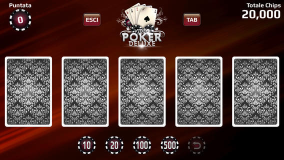 L’obiettivo è quello di costruire la puntata in modo intelligente sul valore della mano: ogni mano è costituita da una prima distribuzione delle carte e da un cambio. All’inizio bisogna fare la propria puntata toccando le chip nella parte bassa dello schermo, puntando da un minimo di 10 CHIP fino ad un massimo che varia in base alle CHIP in nostro possesso; successivamente, dovremo cliccare il pulsante CARTE che appare ai lati dello schermo per voltare le carte e conoscere il loro valore. A questo punto dovremo poi toccare quelle che vogliamo tenere, che saranno contrassegnate dalla scritta HOLD: toccandole di nuovo potremo annullare l’operazione, mentre selezionando il tasto CAMBIA tutte le carte non tenute saranno scartate e sostituite con altre del mazzo. La mano è ora completa e verrà mostrato il valore finale.