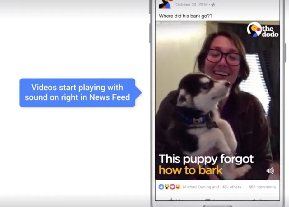 Fino ad oggi i video Facebook pubblicati sul News Feed vengono riprodotti senza audio e, per poter ascoltare il suono, l’utente deve esplicitamente cliccare sul video o interagire con esso. Presto, dice Facebook, il suono verrà invece riprodotto automaticamente durante lo scorrimento dei video nel News Feed, a meno che il dispositivo non sia impostato in modalità silenziosa.
