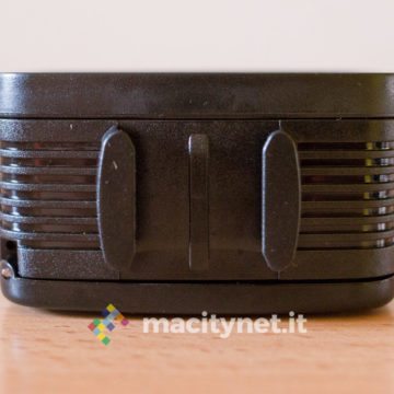 Da un lato c’è il pulsante per accendere la torcia, dall’altro una pinza che permette di aprire il coperchio posteriore che tiene al sicuro da acqua e polvere (la torcia è subacquea e può essere usata anche in immersioni fino a 40 metri di profondità senza l’ausilio di alcuna cover aggiuntiva) ed eventualmente sostituire la batteria rimuovendo il coperchio secondario per mezzo di un cacciavite a taglio.