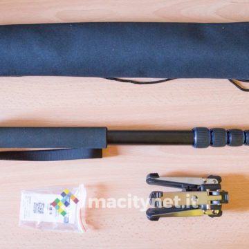 Il monopiede è l’accessorio che ci ha entusiasmati di più perché diversamente da un treppiede è molto meno ingombrante, molto più leggero e, con la punta a mini-treppiede, altrettanto utile per la maggior parte delle situazioni. Escluse le fotografie a lunga esposizione è davvero irrinunciabile anche per chi possiede semplicemente una reflex: lo abbiamo sostituito al nostro treppiede per tutte le uscite fotografiche e non ci siamo mai pentiti di aver lasciato il treppiede a casa. La fluidità della testa a sfera sulla punta permette di registrare video con estrema facilità, specialmente quando si è fermi in un punto (ad esempio all’angolo di una stanza) e si effettua una ripresa spostando lentamente l’inquadratura da un lato all’altro.