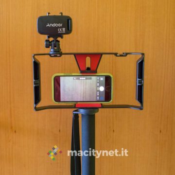 La qualità delle fotocamere degli smartphone è ormai ad un livello tale che si può pensare di impiegare le ultime generazioni anche per l’acquisizione di foto e video di qualità professionale, oltre che ovviamente per fare il classico Youtuber. Se perciò esistono maniglie che aiutano a gestire le riprese con le reflex non ci si deve stupire di veder comparire nel catalogo di Andoer una rivisitazione di questo strumento fatto su misura per gli smartphone. Ne abbiamo ricevuto un campione in prova in redazione insieme ad un monopiede con base a mini-treppiede e una torcia LED a luce continua progettata per le action camere ma che, grazie ad un particolare attacco incluso in confezione, permette di sfruttarla anche con la reflex o in combinazione con lo smartphone per mezzo di questa pratica maniglia.