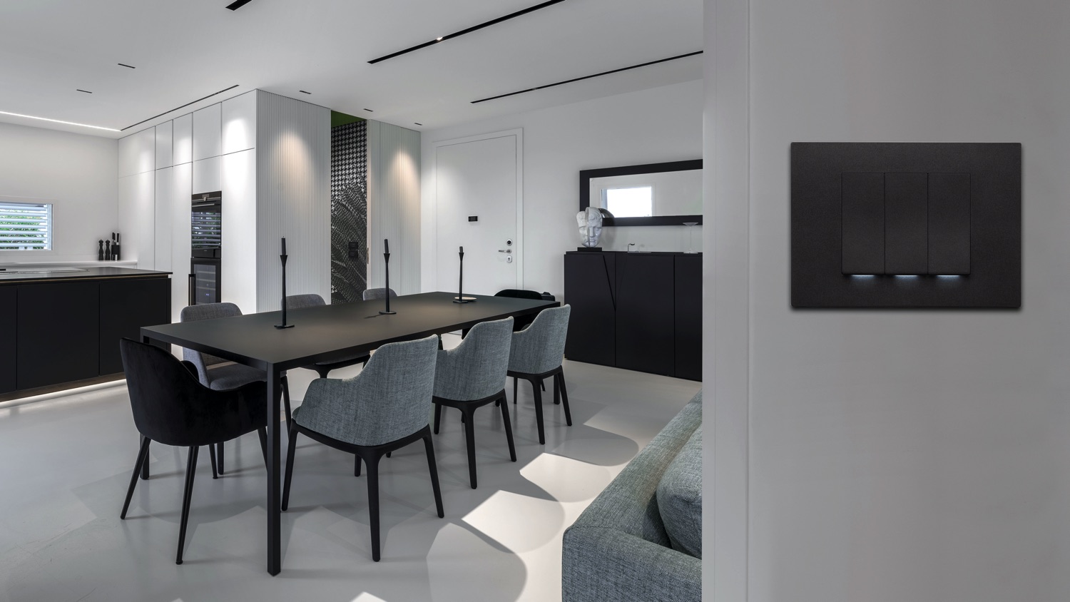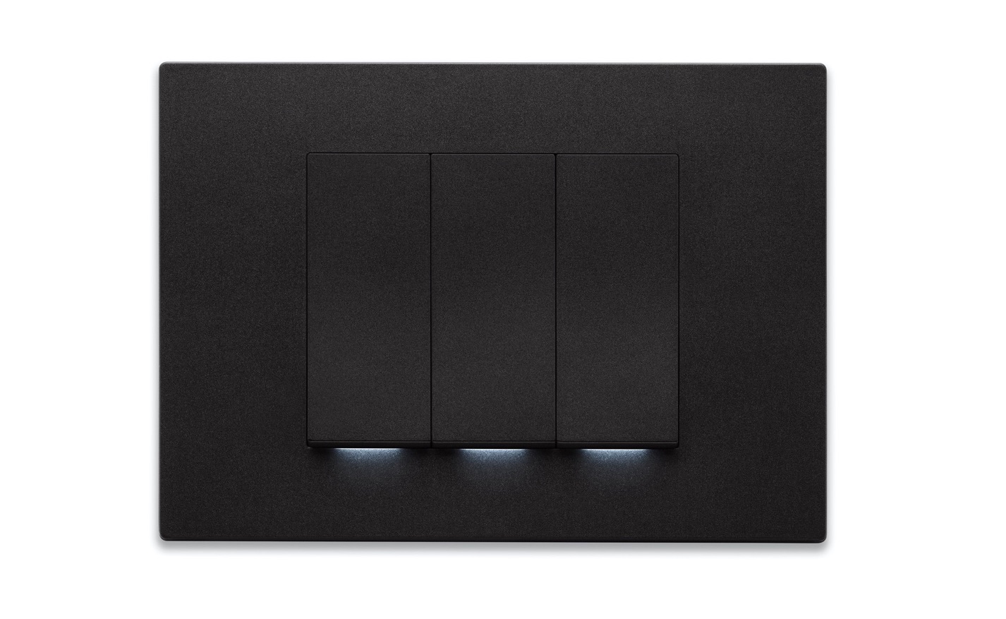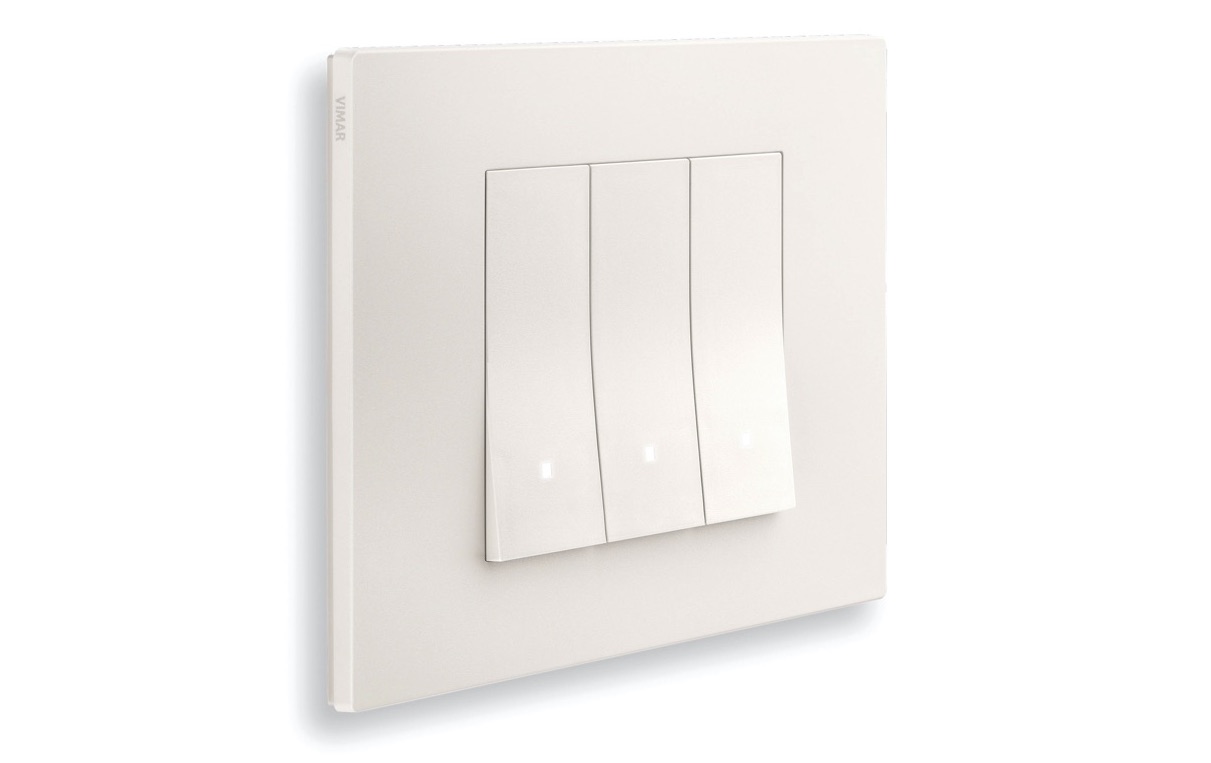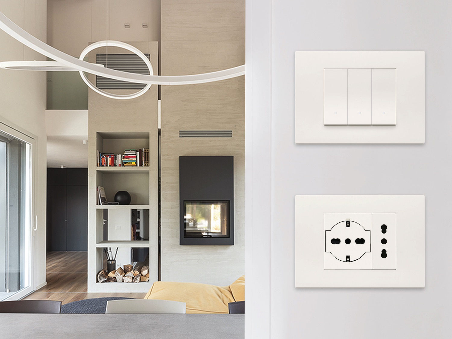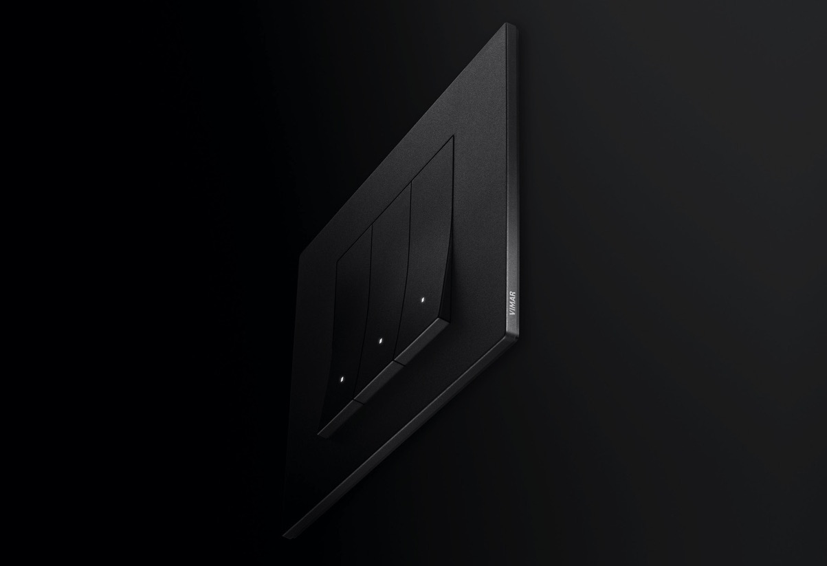La caratteristica di base è lo spessore minimo insieme all’assoluta planarità tra placca e comandi interrotta dal profilo delicatamente curvato del nuovo tasto allineato che permettono anche di far “scomparire” l’insieme in una parete tinteggiata negli stessi colori o sottolinearne la presenza con discrezione.
