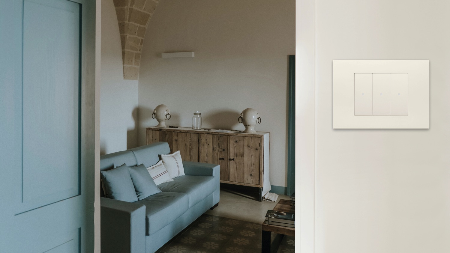Grazie al sistema View Wireless è infatti possibile aggiornare gli spazi con semplicità e senza opere murarie per controllare e gestire, da remoto tramite app o con assistenti vocali, luci, tapparelle, temperatura di ogni stanza, accessi e consumi energetici.