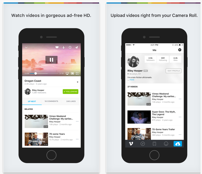 Vimeo è disponibile per il download gratuito su iTunes App Store, richiede iOS 7.0 o versioni successive ed è compatibile con iPhone, iPad e iPod touch.