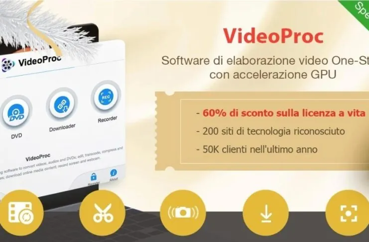 Il Natale sta arrivando e con esso anche i regali, fra cui un risparmio del 60% sulla licenza a vita di VideoProc, il software che integra in una sola applicazione un convertitore audio/video/ DVD, un editor video ed registratore dello schermo.
