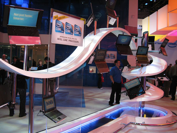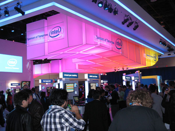 Al CES era presente anche Intel con un ampio stand meta di numerosi visitatori. La parte più consistente dello spazio espositivo era dedicata ai processori e ai dispositivi per la mobilità , in particolare le CPU delle famiglie Intel Core i3, i5 e i7 unitamente ai principali computer portatili. Grazie alla grande varietà di CPU Intel il colosso dei processori è presente praticamente in ogni segmento del mercato a partire dai dispositivi tascabili con i processori Atom, passando per i portatili ultra sottili e leggeri con i processori Core i3 e i5, fino ad arrivare ai sistemi portatili più potenti con processori Core i7.