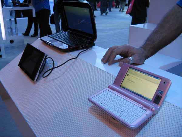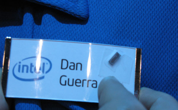 Il processore Atom è utilizzato non solo nei netbook ma anche in dispositivi più compatti che estendono le funzionalità dei player multimediali portatili per offrire le funzioni di un computer in formato tascabile. In questa sezione Dan Guerra, il presentatore Intel che accoglieva i visitatori, portava un processore Atom all’interno del badge, a lato del proprio nome: in questo modo era possibile dare una occhiata da vicino alle dimensioni estremamente contenute di Atom. Ricordiamo che Atom è il processore integrato anche nel Nokia Booklet, il primo portatile presentato alcuni mesi fa dalla costruttore finlandese.