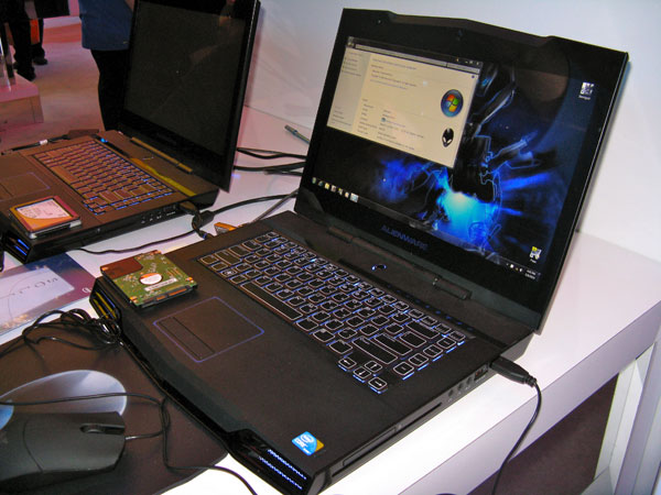 Numerosi anche i computer portatili in mostra che funzionano con i nuovi processori Intel Core i5 e Core i7 in grado di offrire prestazioni decisamente superiori rispetto ad Atom, indicati per gli utenti che richiedono notebok con prestazioni del tutto paragonabili ai desktop. In particolare ricordiamo il super portatile Alienware dotato di processore a 4 nuclei di calcolo Intel Core i7-720QM. Grazie alla tecnologia Hyper Threading il processore è in grado di eseguire fino a 2 thread per nucleo. La frequenza di funzionamento e di 1,6GHz, mentre con la tecnologia Turbo Boost può arrivare fino a 2,8GHz per un singolo core quando gli altri nuclei non sono operativi.