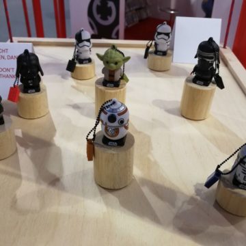 In occasione dell’ottavo episodio della saga di Star Wars, “The Last Jedi”, Tribe propone un restyling della linea di chiavette USB, proponendo una inedita Gold Edition. Tra gli accessori visti a IFA 2017 anche portachiavi Star Wars contenenti mini cavi Lightning, per il collegamento di iPhone e iPad. Ecco le foto scattate nello stand di Berlino.