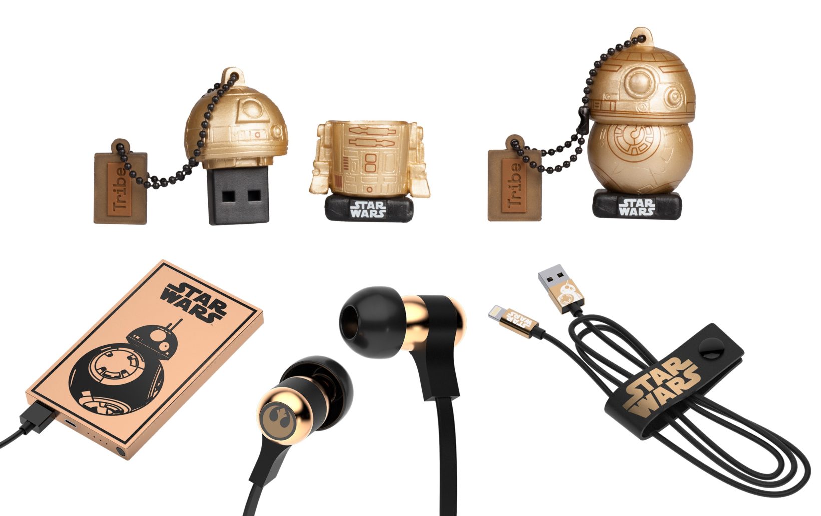 L’altra novità di Tribe riguarda la presenza di una Gold Edition da collezione, totalmente in tinta oro, che si compone di due chiavette USB da 16 GB, dedicate ai droidi BB-8 e R2-D2, a cui si aggiungono auricolare, power bank e cavetto USB nelle versioni Micro e Lightning.